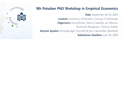- Organizers: Marco Caliendo, Shushanik Margaryan, Thomas Siedler, Joschka Wanner (University of Potsdam)