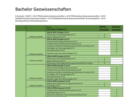Im letzten Jahr kann man sich dann Vertiefungsmodule aus den Bereichen Geologie, Mineralogie und Geophysik nach Interesse aussuchen. Ein Praktikum steht zudem an.