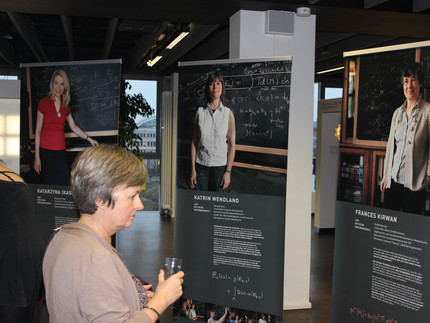 Zum diesjährigen Frauensalon am 08. März wurde die deutsche Version der Ausstellung Frauen in der Mathematik (englische Originalversion: Women of Mathematics von Noel Tovio Matoff (Fotos), Sylvie Paycha (Interviews), Sara Azzali (Interviews)[et al.]) feierlich durch die Gleichstellungsbeauftragte der Universität Potsdam Franka Bierwagen eröffnet. Eingebettet in Diskussionen zum Motto der 27. Brandenburgischen Frauenwoche "Frauen MACHT faire Chancen" standen Frauen aus unterschiedlichen Ländern und mit diversen Hintergründen im Fokus. Detaillierte Informationen zum Frauensalon erhalten Sie im Blog des Frauenpolitischen Rates.
