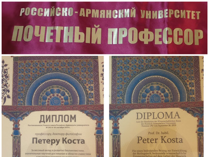 Prof. Dr. Peter Kosta became Honorary Professor on October 2, 2019, in a ceremony of the Rectorate of the Russian-Armenian University, Yerevan.