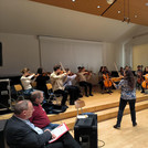 Die musikalische Eröffnung und Begrüßung erfolgte durch Kathrin Sutor mit Ihrem Master-Seminar zur Instrumentalpraxis und Ensembleleitung im Instrumentalklassenunterricht. Die Gäste des Salons konnten durch Studierende miterleben, wie Schüler:innen am Beispiel von Streichern im regulären Musikunterricht über zwei Jahre ein Instrument erlernen können.