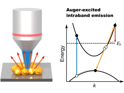 Photoluminescence from metal nanostructures offers a promising means of studying excited charge processes in metal nanostructures. Moreover, they have many potential applications in sensing, imaging, and nanothermometry. However, a general understanding of the emission from metal nanoparticles has not yet been achieved. In particular, the possible presence of sequential emission mechanisms involving the excitation of conduction band electrons via interband Auger scattering remains unclear. In this article, we provide spectroscopic evidence of Auger-excited intraband emission from gold nanoflowers. We employ a combination of photoluminescence and photoluminescence excitation spectroscopy to investigate the excitation pathways in films of gold nanoflowers. While, on the one hand, the excitation spectrum clearly demonstrates absorption by interband transitions, the emission spectra can be unequivocally assigned to intraband recombination. The combination of these two observations can be conclusively explained only by Auger-excited intraband emission. These results suggest Auger excitation to be a promising route to generate energetic nonthermal electrons with energies substantially above the Fermi level. Exploiting this effect could strongly benefit applications for nanoluminescent probes and the progress of plasmon catalysis.