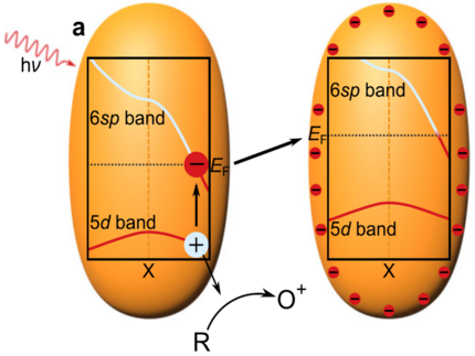 Light can charge plasmonic nanoparticles by photoredox reactions, significantly modifying their optical and chemical properties. However, the charging process has been challenging to track experimentally, severely hindering its thorough evaluation. In this study, we investigate the charging of gold nanorods during a light-induced reaction in situ, utilizing the sensitivity of the rods’ longitudinal localized surface plasmon resonance to charge accumulation. Describing the particles as nanocapacitors, we present a model to quantify the number of charges on the particles and their connection to the illumination intensity. We find that the Fermi level, together with all other energy bands, is raised because of the repulsive potential of the additional charges. Experimental observations of the dependence on the solvent, the particle size, and ligand type further corroborate the proposed capacitor model. The results presented in this study lay the groundwork for the rational engineering of dynamic charge accumulation during plasmon-driven photoreactions.