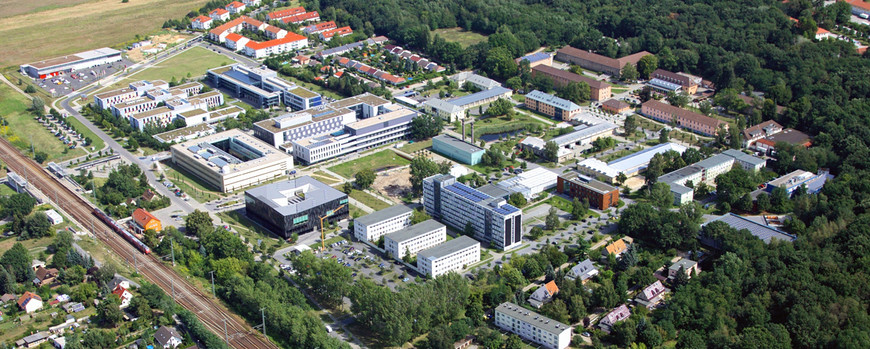 The legal successor of the Brandenburg State University was the University of Potsdam, which was founded on July 15, 1991, and also took over the Golm complex. At first a majority of the humanities were located here; later, the campus came to host the Faculty of Science and the Faculty of Human Sciences. Today, the University’s institutions are part of the “Golm Science Park,” which includes institutes of the Max Planck Society and the Fraunhofer Society on its 50-hectare complex. With its 62,000 square meters, the Golm Campus is the largest of the University of Potsdam’s three campuses. There are still buildings on the campus from all of the site’s various historical phases. The cafeteria (building 4) is located in the former Luftwaffe mess hall of 1936. The highest building, the seven-story prefabricated building 14, was built in 1977 and received a new facade in 2010/11. From 2006 to 2008, the “Golden Cage” (building 28) was built, which is a laboratory building for physicists and astronomers. The Information, Communication and Media Center (IKMZ) opened its doors in 2011 in building 18; it houses about one million books and other media and received the German Higher Education Construction Prize in 2014. In January 2016, a memorial by artist Volker Bartsch was placed south of the library to remind us of the problems associated with the education of Stasi employees in Golm.
