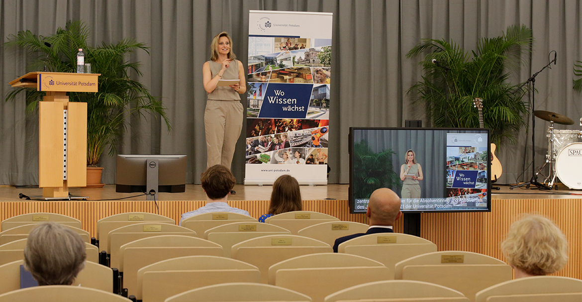 Die Studienzeit ist ein wichtiger, ereignisreicher und prägender Lebensabschnitt, der sicher nicht in Vergessenheit gerät. Damit diese Etappe einen würdigen Abschluss erhält, lädt die Universität Potsdam ihre Absolventinnen und Absolventen alljährlich mit ihren Familien und Freunden zu einer zentralen Verabschiedungsfeier ein. Eine Zusammenfassung der vergangenen Veranstaltungen sowie Impressionen und Mitschnitte finden Sie auf dieser Seite.