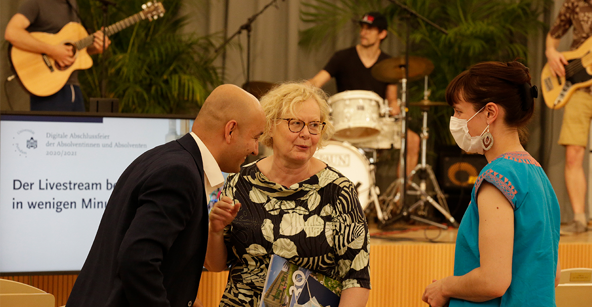 Ein Höhepunkt jedes akademischen Jahres ist die Abschlussfeier für die Absolventinnen und Absolventen der Universität Potsdam vor der historischen Kulisse der Kolonnade am Neuen Palais. Doch wie schon 2020 musste der Festakt pandemiebedingt online stattfinden. Die Festrede hielt Prof. Dr. h.c. Jutta Allmendinger, Ph.D., Präsidentin des renommierten Wissenschaftszentrums Berlin für Sozialforschung (WZB). Brandenburgs Wissenschaftsministerin Dr. Manja Schüle und Potsdams Bürgermeister Burkhard Exner überbrachten Grußworte.