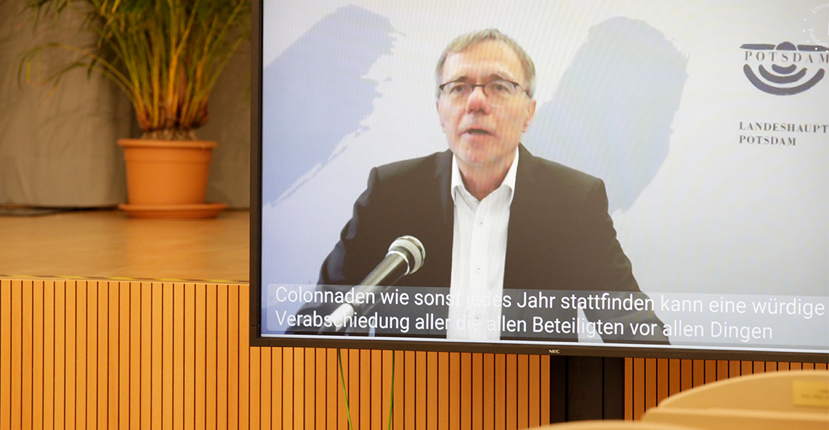 Die feierliche Verabschiedung der Absolventinnen und Absolventen vor der historischen Kulisse der Kolonnade am Neuen Palais gehört an der Universität Potsdam zu den Höhepunkten eines jeden akademischen Jahres. Sie wegen der Pandemie ausfallen zu lassen, kam nicht infrage. Hoffentlich einmalig fand der Festakt 2020 deshalb am 2. Juli 2020 online statt. Die Festrede hielt die Botschafterin Australiens in Deutschland, Ihre Exzellenz Lynette Margaret Wood. Brandenburgs Wissenschaftsministerin Dr. Manja Schüle und Potsdams Oberbürgermeister Mike Schubert sendeten Videobotschaften.