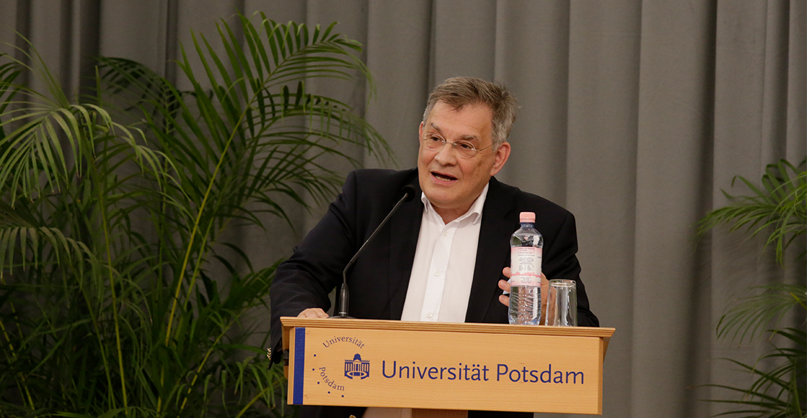 Mit einem Festakt im auditorium Maximum Am Neuen Palais hat die Universität Potsdam am 21. Juni 2018 ihre Absolventinnen und Absolventen des akademischen Jahrs 2017/18 feierlich verabschiedet. Der international renommierte Klimaexperte, Prof. Dr. Dr. h.c. Hans Joachim Schellnhuber, Direktor des Potsdam Instituts für Klimafolgenforschung, hielt in diesem Jahr die Festrede. Ein weiterer Höhepunkt war die diesjährige Verleihung des Voltaire-Preises für Toleranz, Völkerverständigung und Respekt vor Differenz. Die mit 5.000 Euro dotierte Auszeichnung wurde an die guatemaltekische Soziologin Dr. Gladys Tzul Tzul verliehen, womit ihr Einsatz für die indigene Bevölkerung in Mittelamerika gewürdigt wurde. Zum Festakt erschienen zahlreiche Gäste aus Politik, Kultur und Wirtschaft. Auch viele Freunde und Angehörige nutzten die Gelegenheit, den erfolgreichen Abschluss dieser wichtigen Lebensetappe gemeinsam mit den Absolventen zu feiern.
