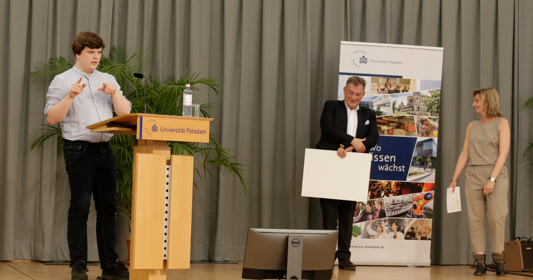 Den DAAD-Preis für hervorragende Leistungen ausländischer Studierender an deutschen Hochschulen erhielt Guy Levy aus Israel, der seit 2016 an der Universität Potsdam Psychologie (Bachelor) studiert und sowohl fachlich als auch sozial überdurchschnittlich engagiert ist.