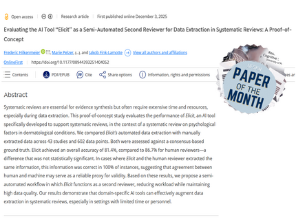 Comment: What makes the paper special is that it tests an AI tool (Elicit) under real “in vivo” systematic-review conditions, not just retrospectively against an artificial benchmark, so the results speak directly to how teams actually work. In a proof-of-concept across 43 studies and 602 data points, Elicit’s extraction accuracy (81.4%) came close to a human reviewer (86.7%) with no statistically reliable difference overall, and most notably, whenever Elicit and the human extracted the same information, it was correct 100% of the time. That simple but powerful finding supports a pragmatic hybrid workflow: use Elicit as a semi-automated second reviewer, then focus human effort on resolving only the flagged discrepancies, potentially cutting verification workload roughly in half without sacrificing quality.