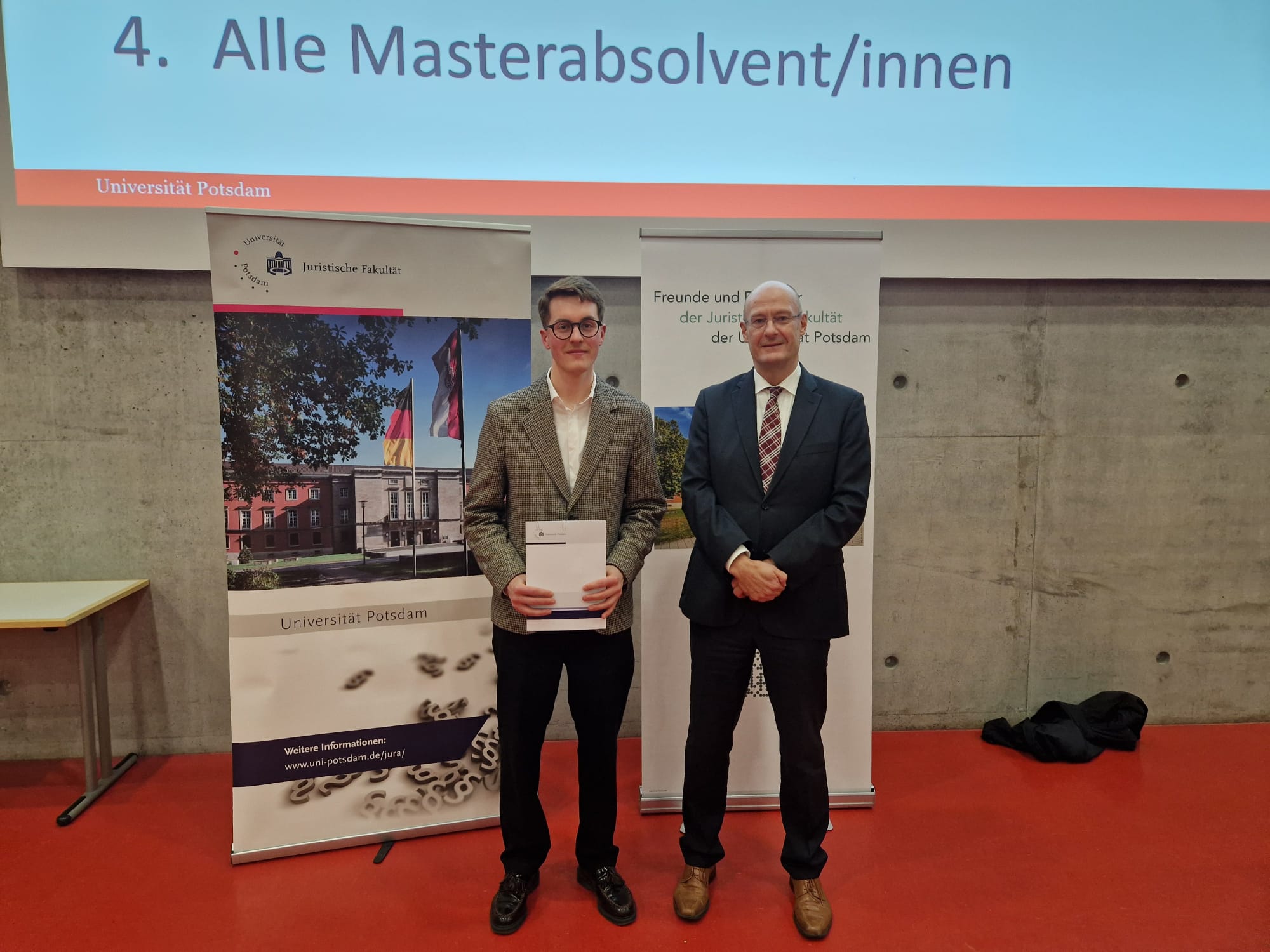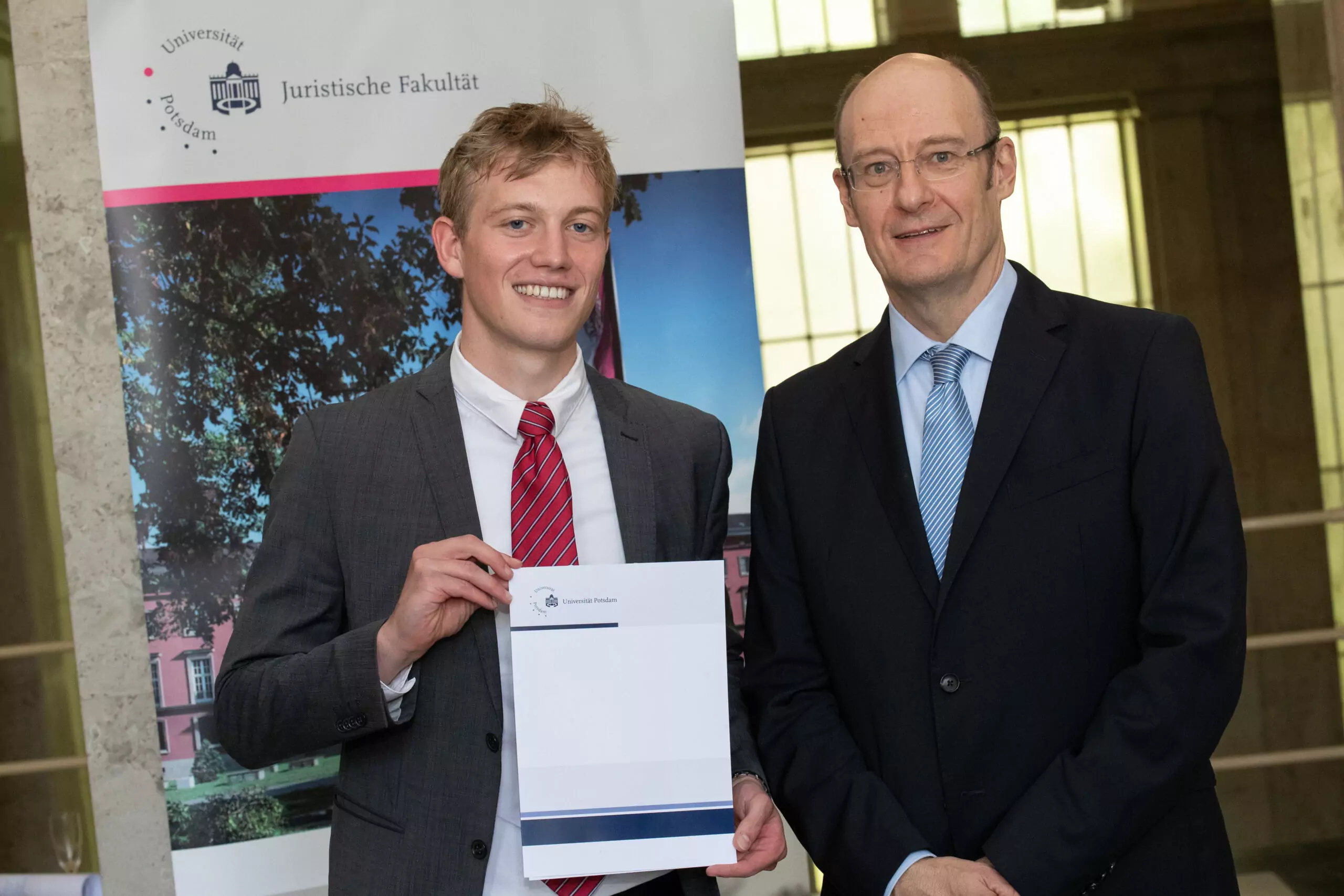Beide Preisträger wurden für ihre hervorragenden akademischen Leistungen geehrt und waren beste Absolventen ihrer Jahrgänge im Deutsch-Französischen Studiengang der Juristischen Fakultäten der Université Paris Nanterre und der Universität Potsdam.