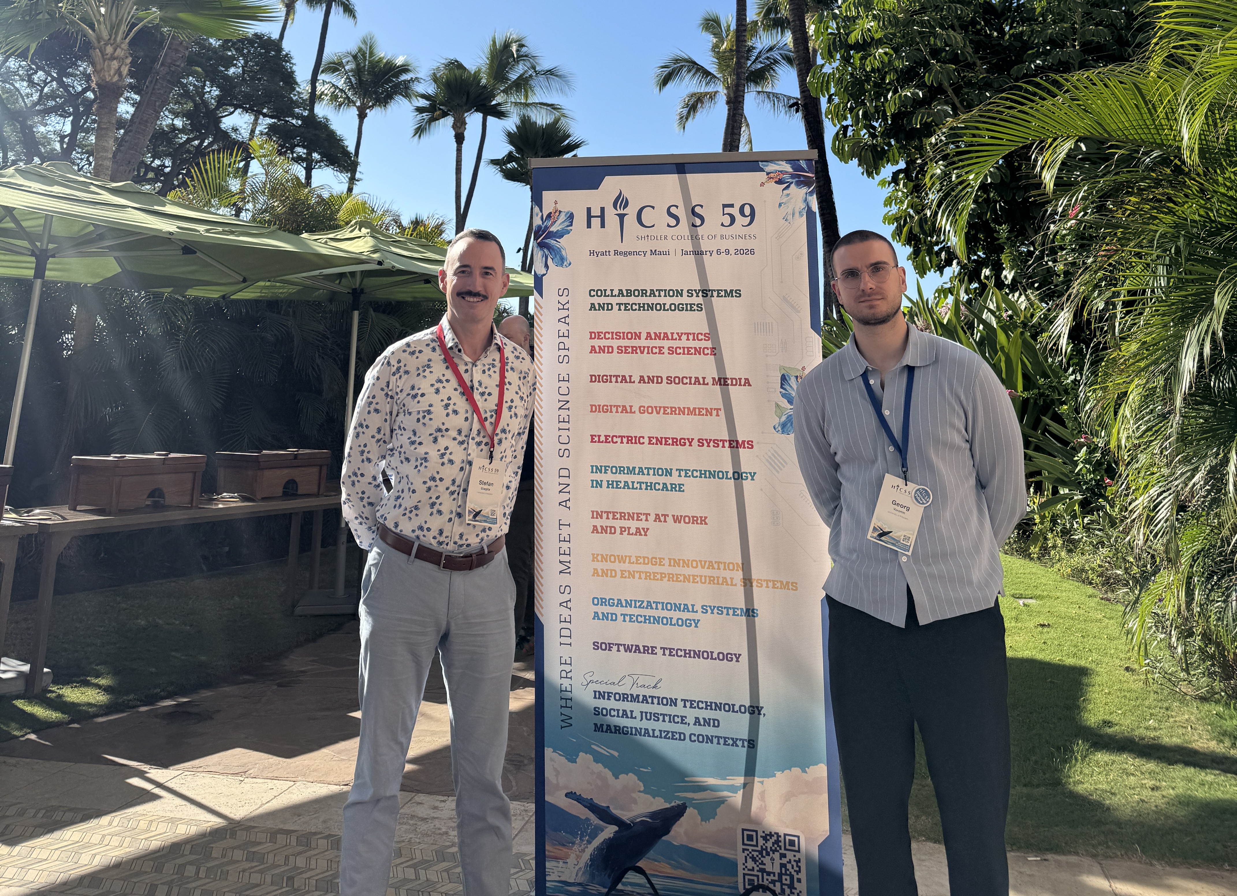 Neben den Präsentationen nahm Gosha am HICSS Doctoral Consortium teil und profitierte dort von intensivem Austausch, Mentoring und wertvollen fachlichen Impulsen aus der internationalen Community.