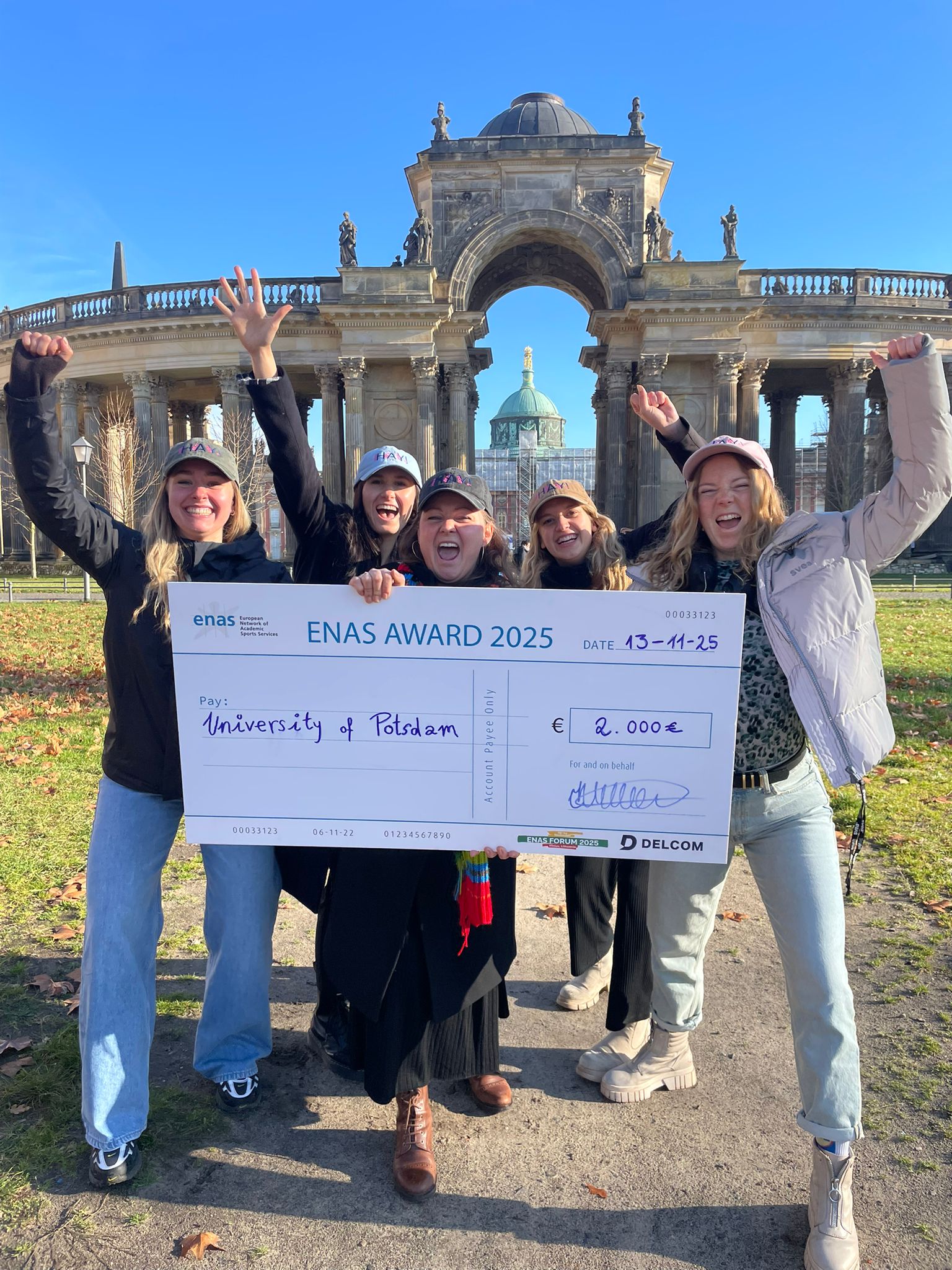 Vilnius, November 2025 - Die Universität Potsdam ist für ihre Gesundheits- und Sensibilisierungskampagne „HAY – How are you?“ mit dem Award des European Network of Academic Sports Services (ENAS) ausgezeichnet worden. Der Feel Good Campus, das Studentische Gesundheitsmanagement der Universität, hatte die Kampagne im Zuge der ersten großen Gesundheitsbefragung unter 22.000 Studierenden entwickelt. „Gesundheit sollte nicht länger ein privates, unsichtbares Thema bleiben, sondern strukturell wahrgenommen, wissenschaftlich erfasst und strategisch gefördert werden“, erklärt Koordinatorin Julia Seiffert vom Feel Good Campus das Anliegen. „Es ging uns weniger um eine reine Datenerhebung, als um den langfristigen Kulturwandel an Hochschulen: Gesundheit soll sichtbar, diskutierbar und durch strukturelle Maßnahmen förderbar sein.“
