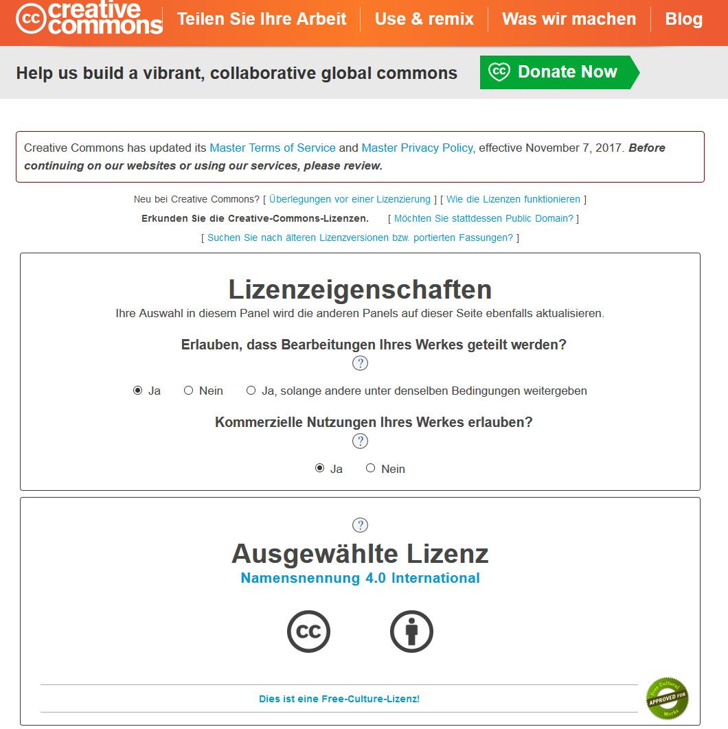 Weitere Informationen zu Creative Commons-Lizenzen gibt die Webseite Choose a Licence.
