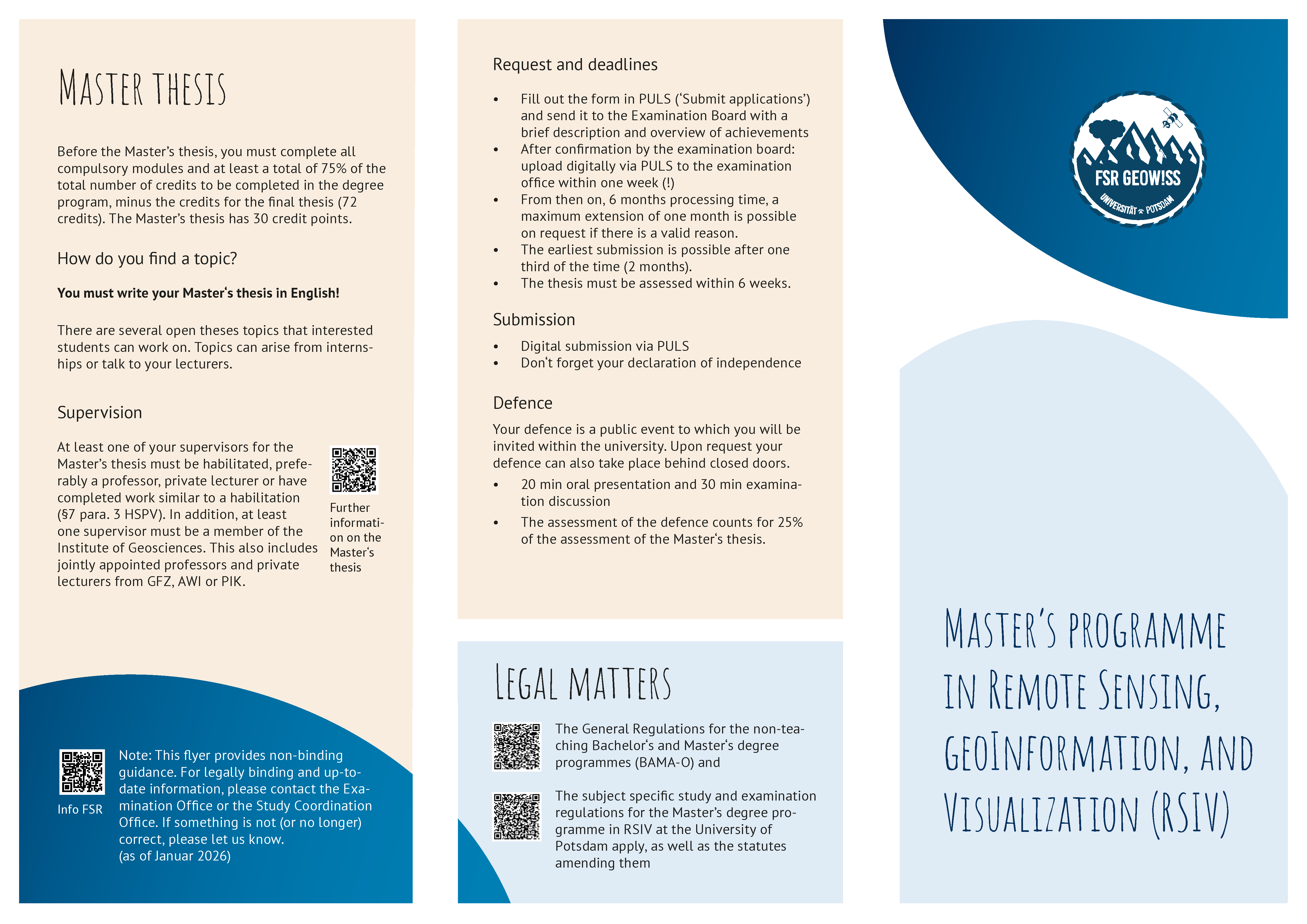 Dieser englischsprachige Masterstudiengang konzentriert sich auf die Erfassung, Verarbeitung, Analyse und Präsentation geowissenschaftlicher Raumdaten unter Verwendung von Fernerkundungstechnologien und Datenverarbeitungsmethoden. Der Studiengang nutzt Modelle und Theorien zur Bewertung von Geoinformationen und zur Aufbereitung und Kommunikation unserer Ergebnisse mit modernen Visualisierungsmitteln.