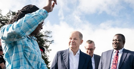 Lydia Olaka, die in Potsdam am Institut für Geowissenschaften promovierte, nun Professor an der Techn. University of Kenya, begrüßte Bundeskanzler Scholz u