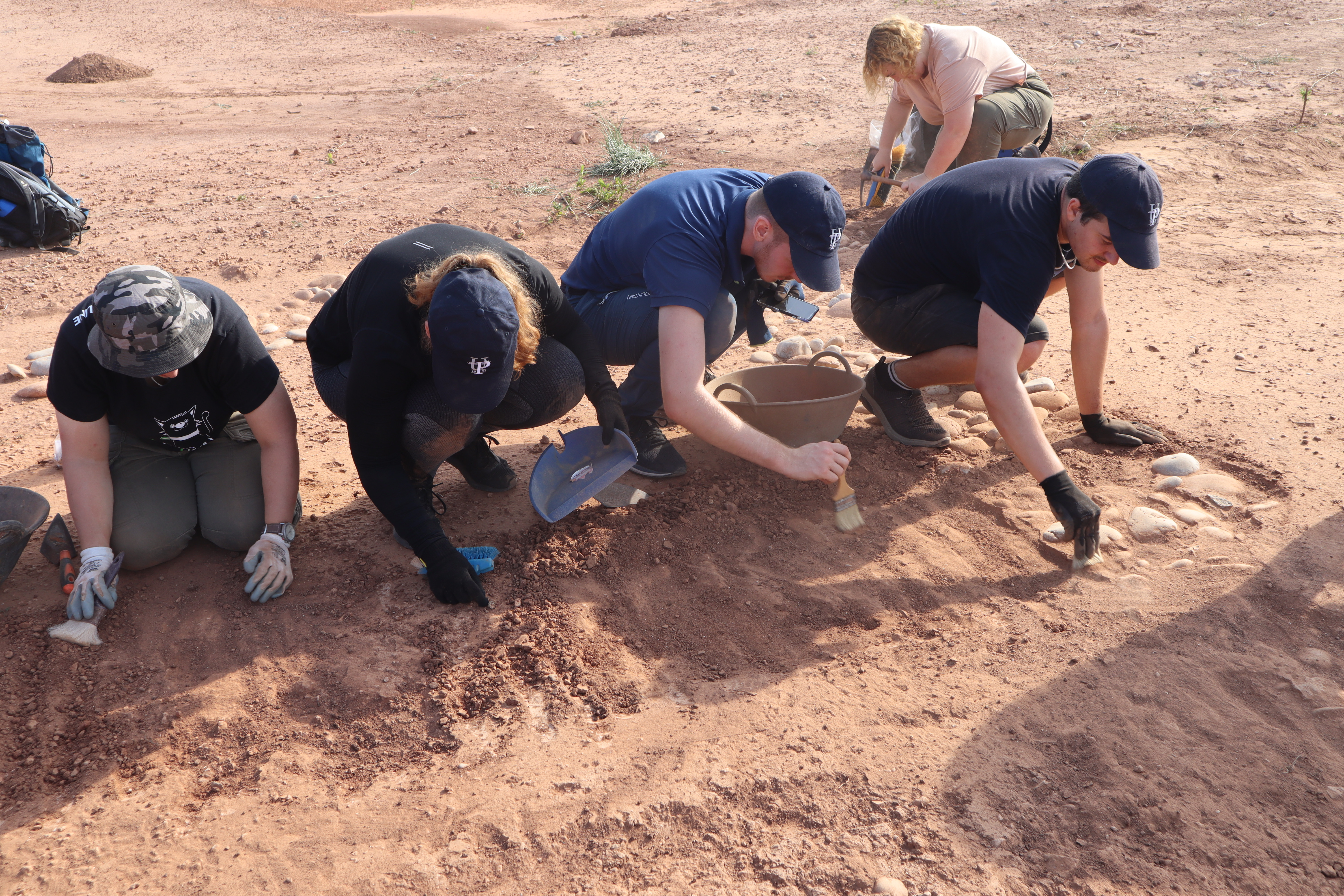 In einer der Gruppen machten wir die Fläche und die abgeschnittene Oberfläche der Mauer eines großen Raums weiter sauber. Wir hatten noch nicht angefangen die Erdschichten abzutragen. Die Spitzhacken oder „picos“ auf Spanisch, wie die spanischen Studierenden es uns beibrachten, durften noch nicht benutzt werden. Die Gruppe bestand aus spanischen, italienischen und deutschen Studierenden. An diesem Tag hatten sich die Studierenden schon gut gemischt, es gab keine Gruppe, die nur aus Kommilitoninnen und Kommilitonen der eigenen Uni bestand. Die Kontakte wurden dementsprechend immer zahlreicher. Aber so gab es auch Missverständnisse: Die deutschen Studierenden hatten beispielweise die Anweisung bekommen, die Mauer weiter zu bürsten, während die anderen die Erde im Innenraum leicht kratzten und abtransportierten. Später stellte sich heraus, dass die anderen Studierenden gedacht hatten, die Potsdamer möchten nicht mitmachen.