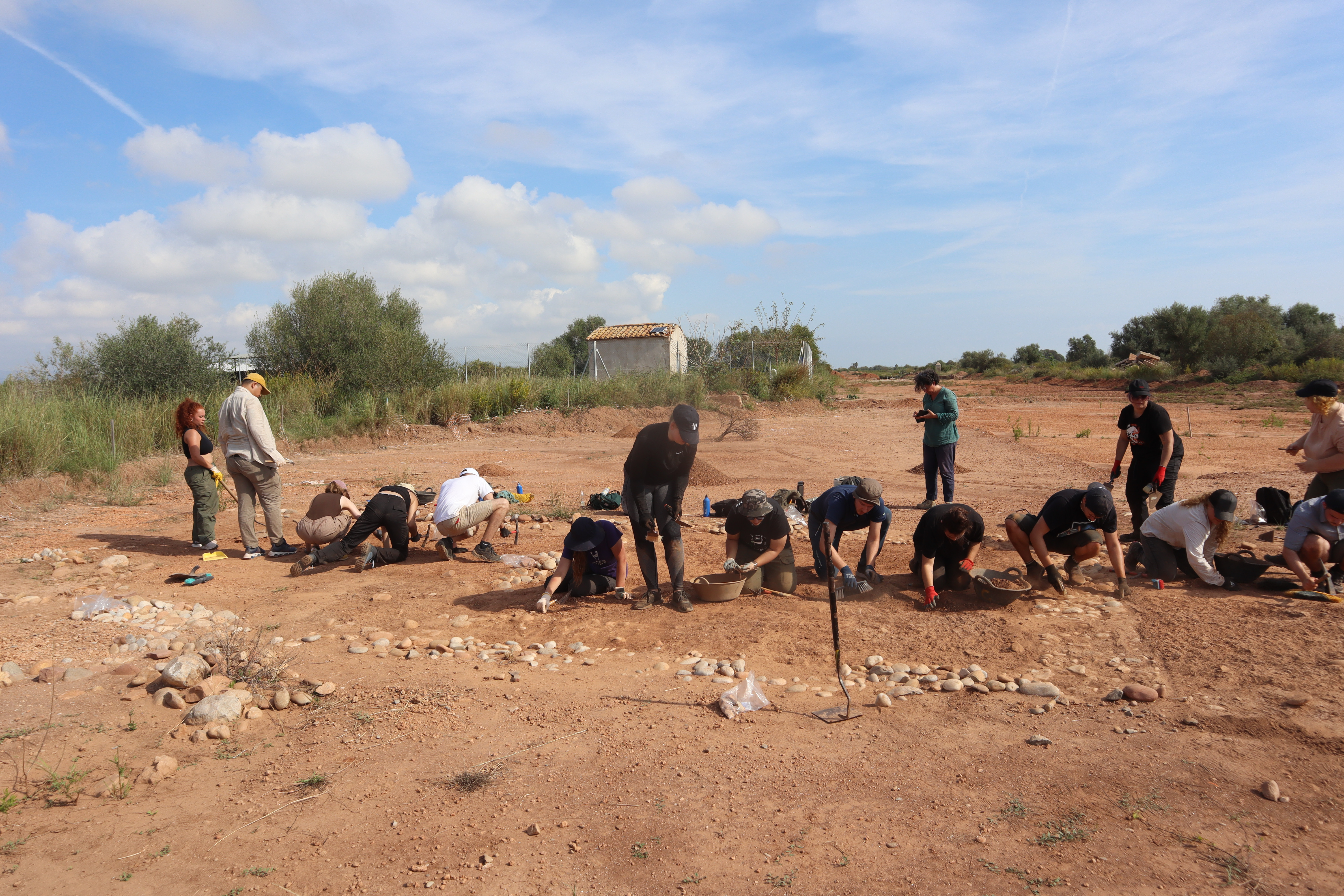 Auch die anderen Gruppen fanden an der Oberfläche Keramikstückchen oder zum Teil Bröckchen von gemeißelten Steinen. Zur Mittagszeit waren viele von den Mücken und der Hitze erledigt. Viele waren ernüchtert, wie mühsam und wenig ertragreich Ausgrabungsarbeiten sind. Nach dem Mittagessen in der „Escola de la Mar“ hellte sich die Stimmung aber wieder auf.