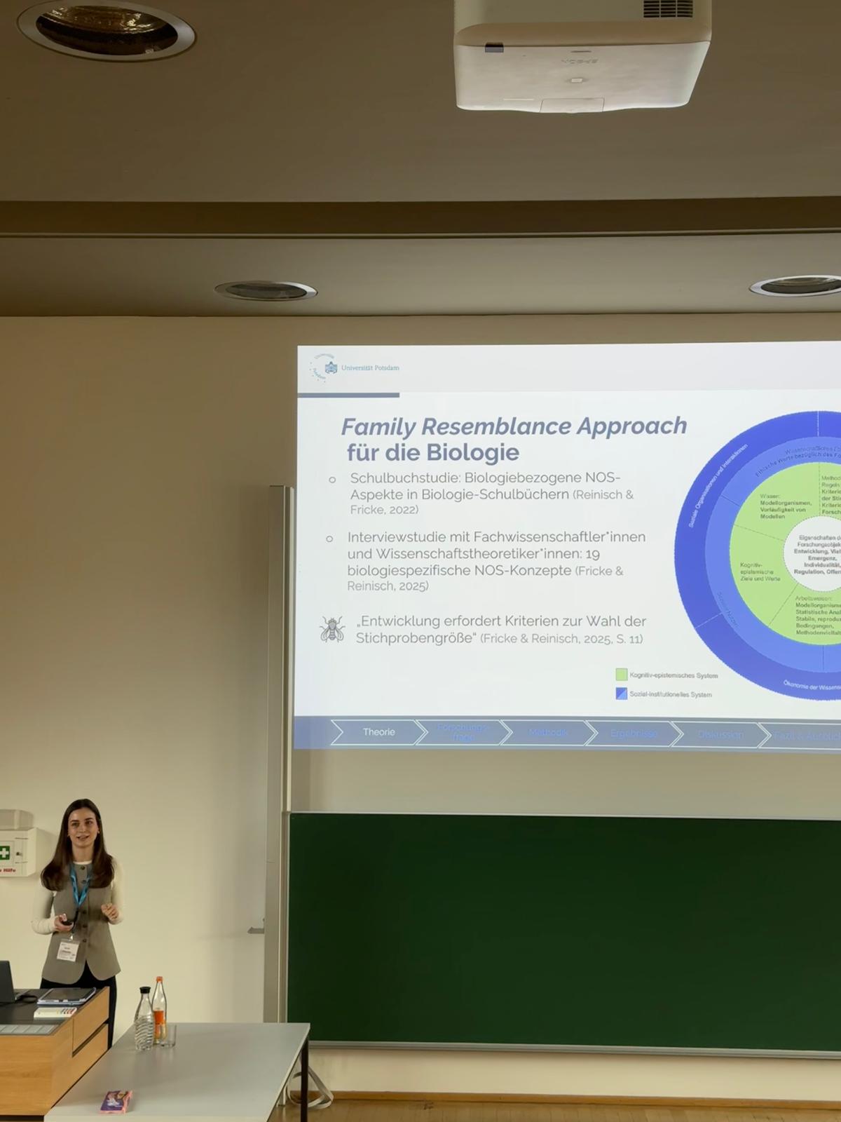 Sarah Wünsche aus der AG Reinisch präsentierte ihr Forschungsposter zu etablierten Instrumenten zur Erfassung des Nature-of-Science-Verständnisses. Neben den wissenschaftlichen Diskussionen förderten gemeinsame Aktivitäten, darunter ein Stadtspaziergang im Stil der „Berliner Schnauze“, sowie gemeinsame Abendessen den Dialog und die Vernetzung.