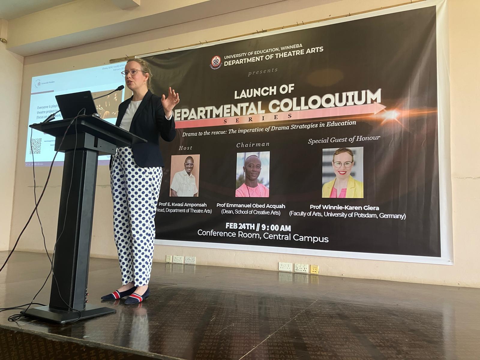 - Lehrveranstaltung zu „Drama Strategies for Teaching Subjects“ im Seminar von Prof. Ernest Kwasi Amponsah mit Theorie-Praxis-Transfer zu drama- und theaterpädagogischen Methoden und Embodied Learning für angehende Lehrkräfte.