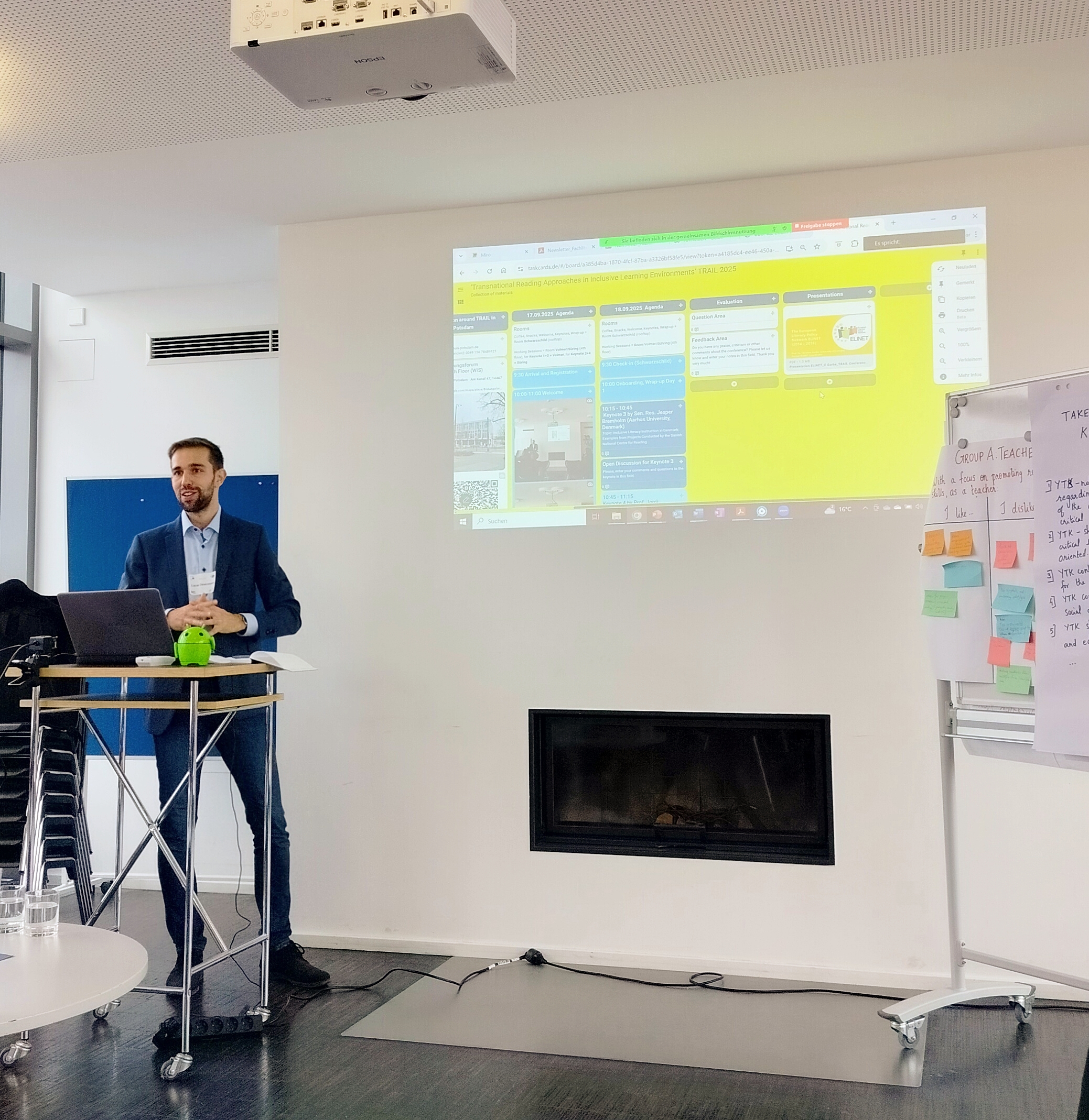Das Fundament der Konferenz bildeten die Grußworte und Keynotes. Den Auftakt der Grußworte markierte die Konferenz-Verantwortliche Prof. Dr. Winnie-Karen Giera (Juniorprofessur für Deutschdidaktik im inklusiven Kontext an der UP) mit der Eröffnung von TRAIL. Im Folgenden sprachen die Vizepräsidentin für Lehre und Studium der UP, Dr. Britta van Kempen, und der Geschäftsführer des Zentrums für Lehrerbildung (ZeLB), Prof. Dr. Andreas Borowski. Ein weiteres Grußwort sandte der amtierende Minister für Bildung, Jugend und Sport des Landes Brandenburg, Steffen Freiberg, per Videobotschaft. Eine besondere inhaltliche Bereicherung stellte der Vortrag von Prof. Dr. Christine Garbe (ehemals u.a. Universität Köln) dar, die als frühere Vorsitzende des ELINET und renommierte Wissenschaftlerin die Entwicklung und Bedeutung dieses europäischen Zusammenschlusses für die Leseforschung nachzeichnete.