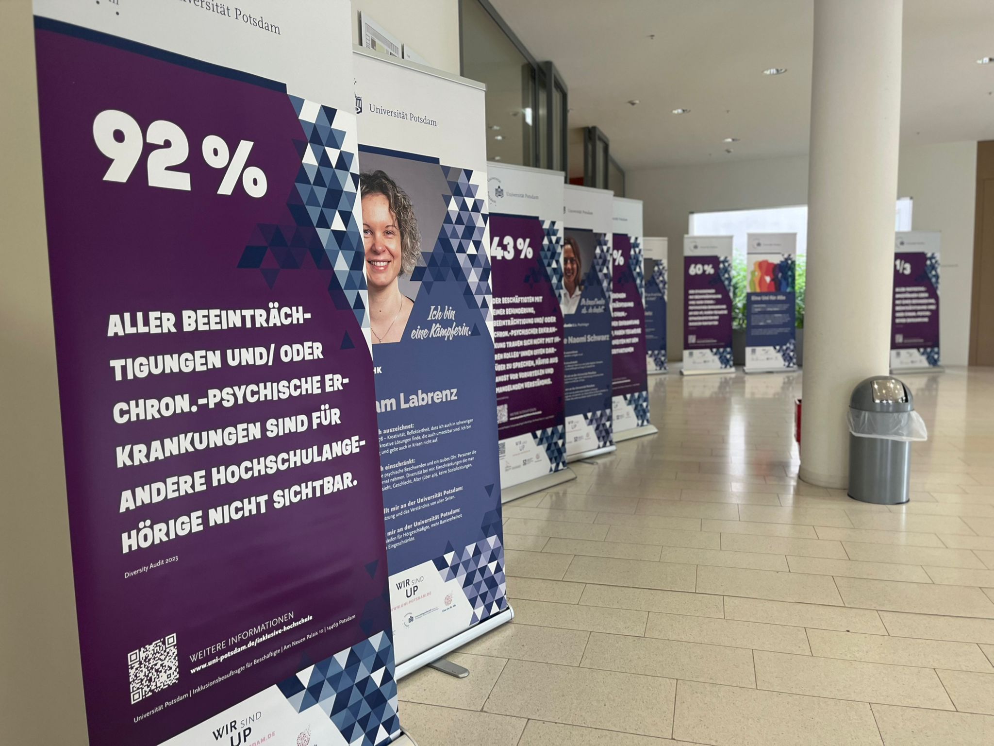 Unsere Kampagne macht das sichtbar, was oft übersehen wird: das Potenzial, die Vielfalt und die Realität von über 33 % der Hochschulangehörigen, die mit Behinderungen, chronischen oder psychischen Erkrankungen leben. Wir brechen mit Tabus, fördern Empathie und schaffen eine Kultur der Offenheit – für ein inklusives Miteinander, das Mut macht und Verantwortung weckt. Denn echte Veränderung beginnt dort, wo Menschen offen einander begegnen und den Dialog suchen. Wo Führungskräfte und Teams bereit sind, Strukturen zu hinterfragen und Räume für Entwicklung zu schaffen. So kann das Studieren und Arbeiten an der Uni Potsdam für alle ein voller Erfolg werden.
