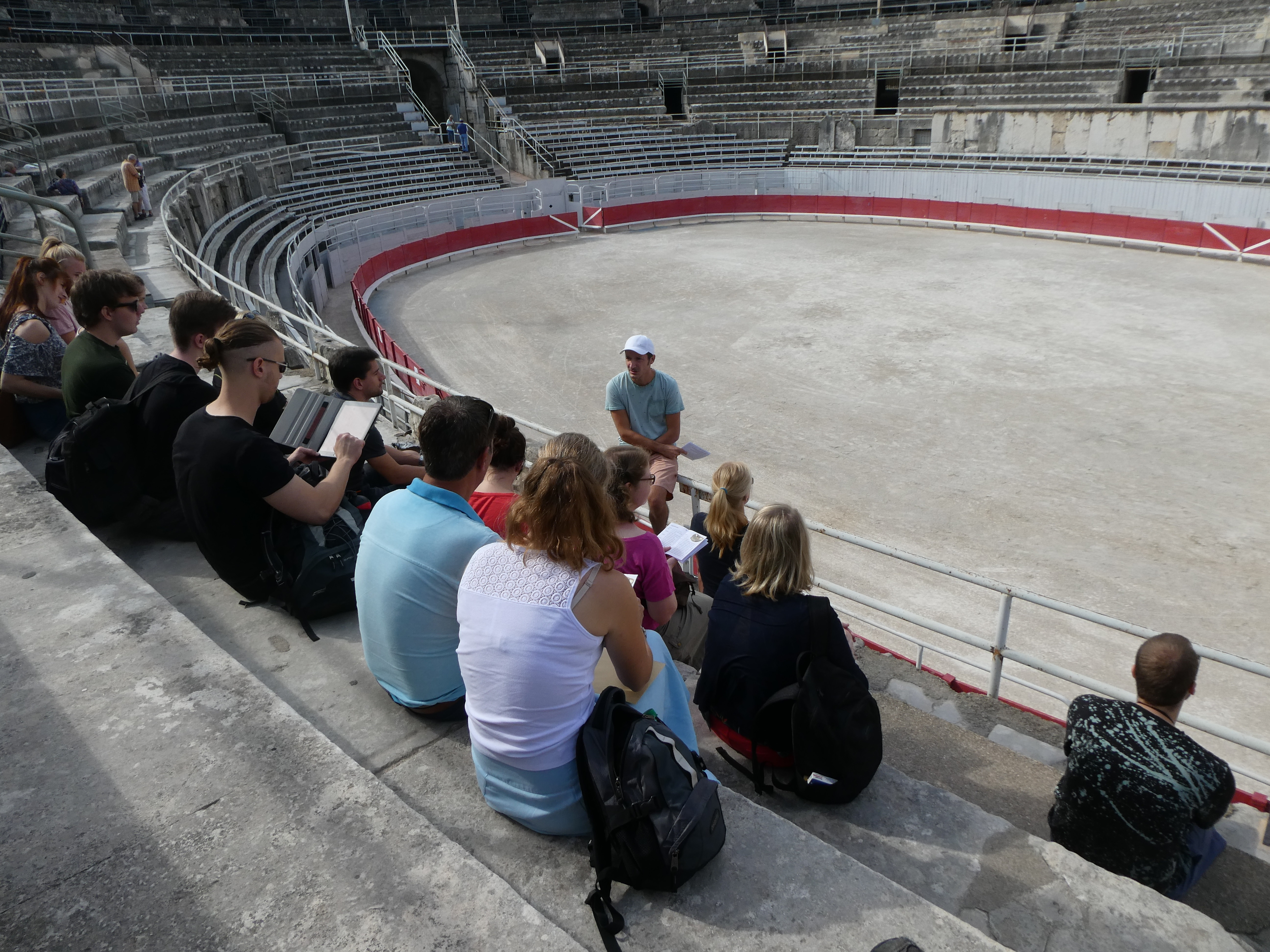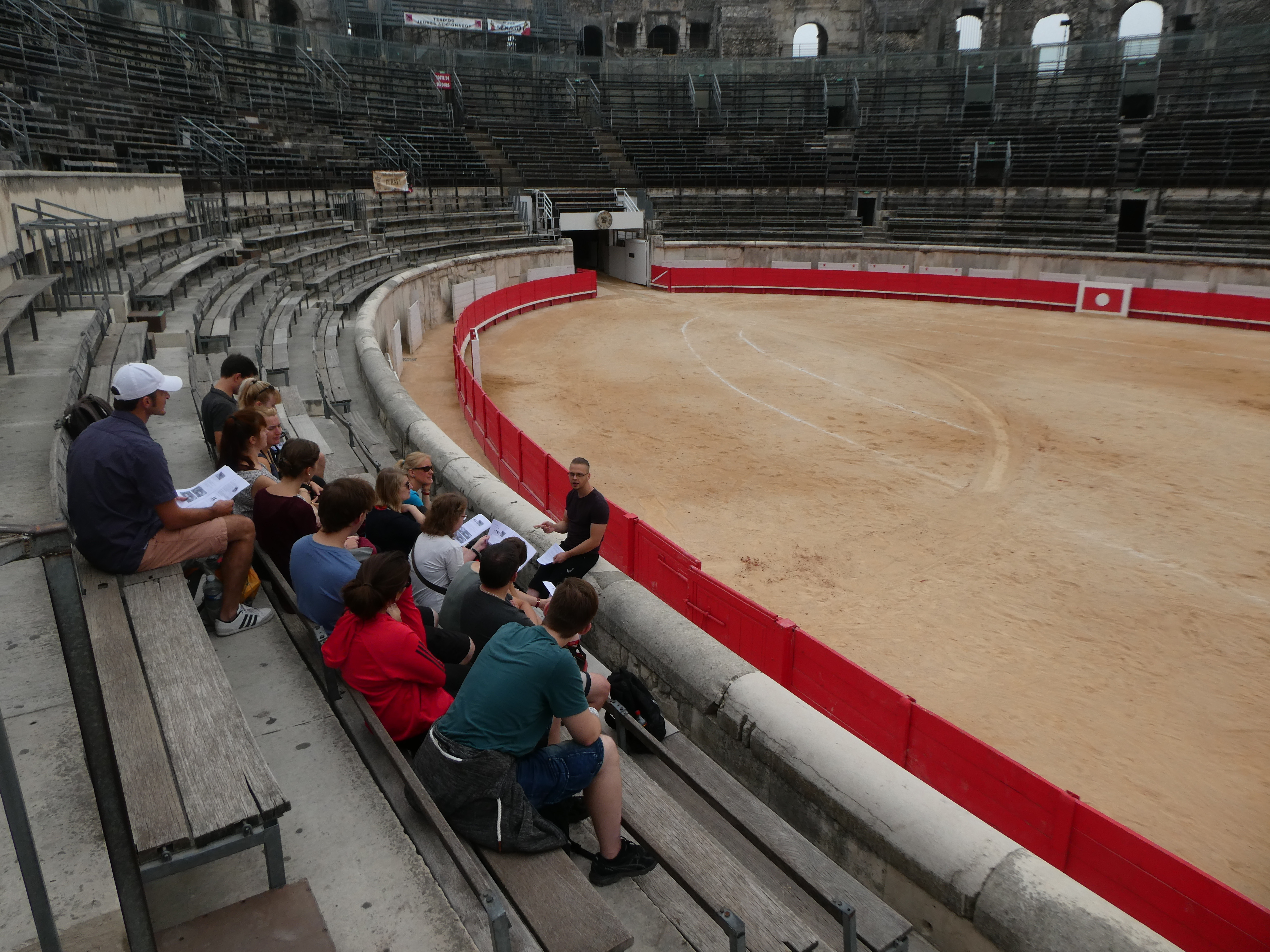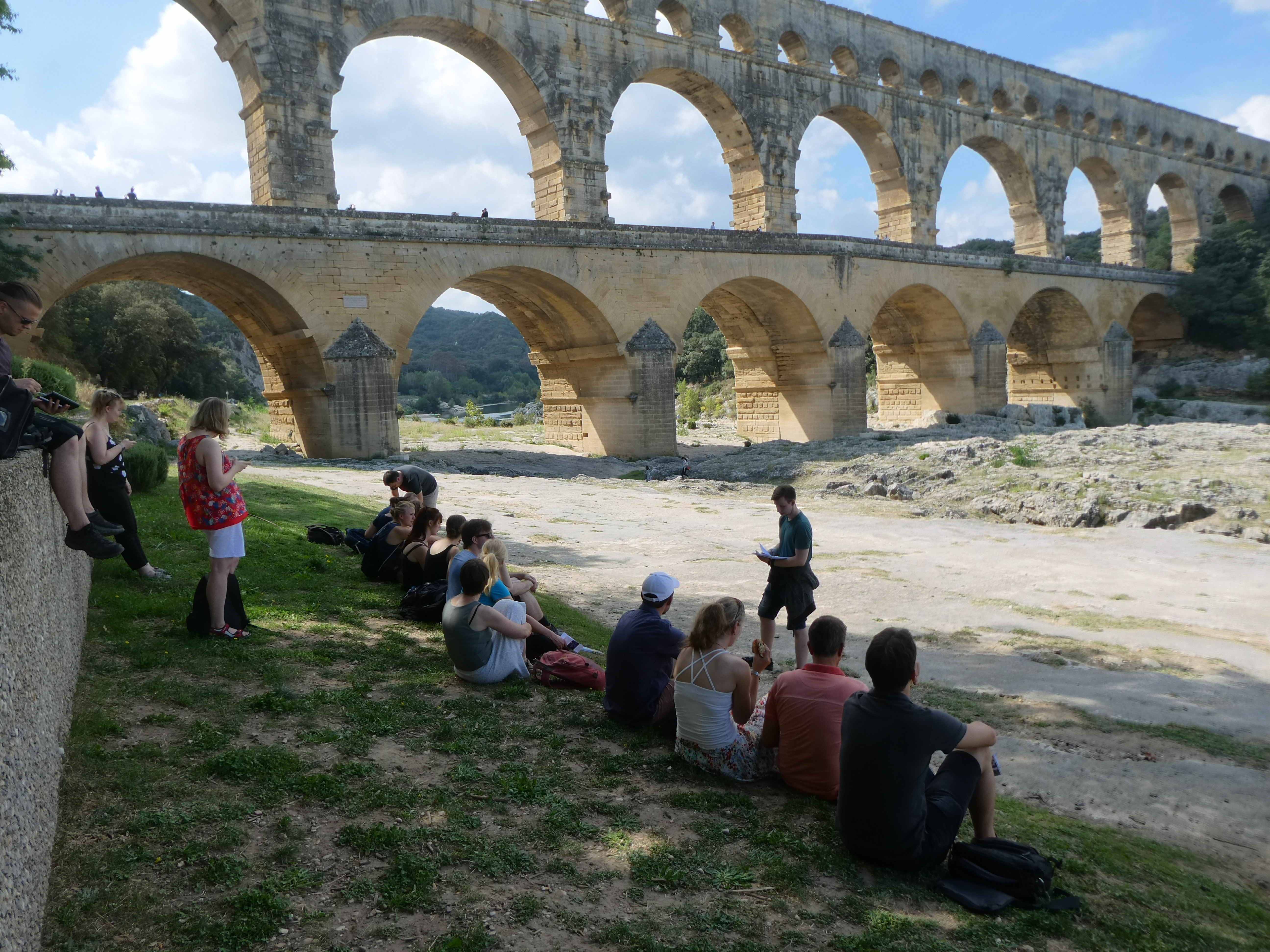 Am Vormittag erhielten wir eine sehr kundige und anschauliche Führung durch das Amphitheater in Nîmes, in dem am Tag zuvor noch ein Stierkampf im Rahmen der Feria stattgefunden hatte. Den überwiegenden Teil des Tages verbrachten wir am Pont du Gard. Wir erkundeten das Bauwerk, nutzten die Gelegenheit zum Baden im eiskalten Gardon und informierten uns im Museum über Wasserbautechnik. Anhand modernster Präsentationstechniken und zahlreicher Rekonstruktionen konnten wir viel über den Bau und Betrieb des Pont du Gard lernen.