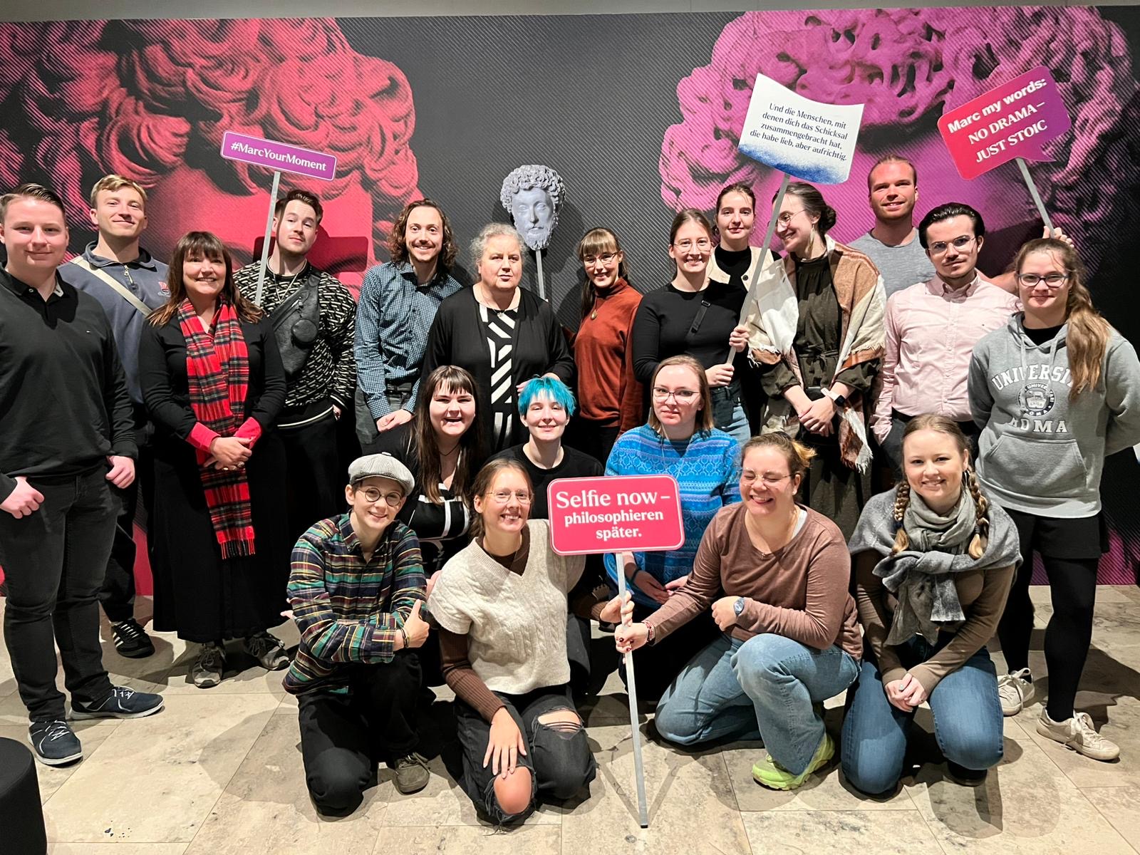 Vom 6.-11. Oktober fuhren wir mit den latinistischen Kolleg*innen aus Rostock nach Trier: In einer dicht programmierten Woche fanden wir eine überwältigende Zahl an Zeugnissen der römischen Antike und ihrer Rezeption vor – vom Unterbau des Amphitheaters über das Landesmuseum mit der Marc Aurel-Ausstellung und von der Villa Borg (mit römischem Essen!) bis zur Igeler Säule, vom Römerschiff Bissula bis hin zum Kurfürstlichen Palais und Karl Marx, der während seiner Trierer Schulzeit für seinen lateinischen Aufsatz ‘An pricipatus Augusti merito inter feliciores reipublicae Romanae aetates numeratur?’ immerhin eine 2-3 erhielt.
