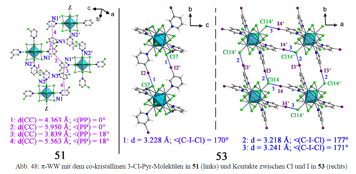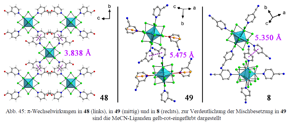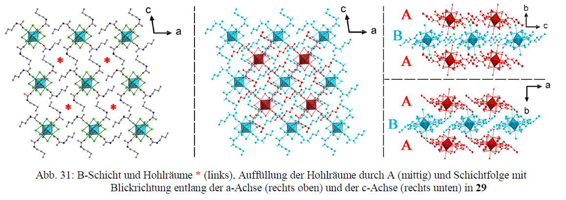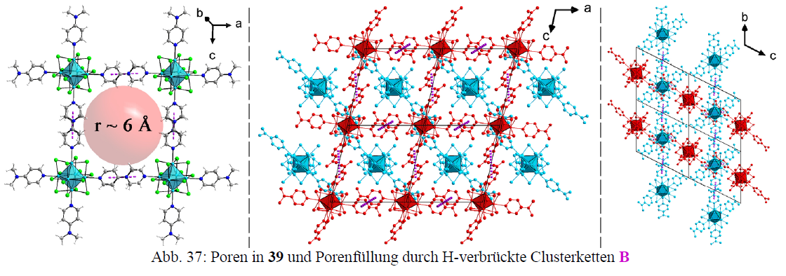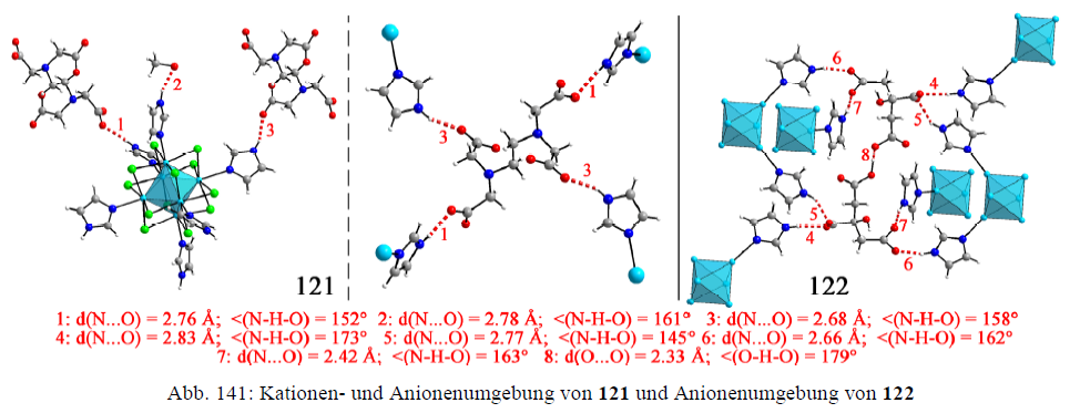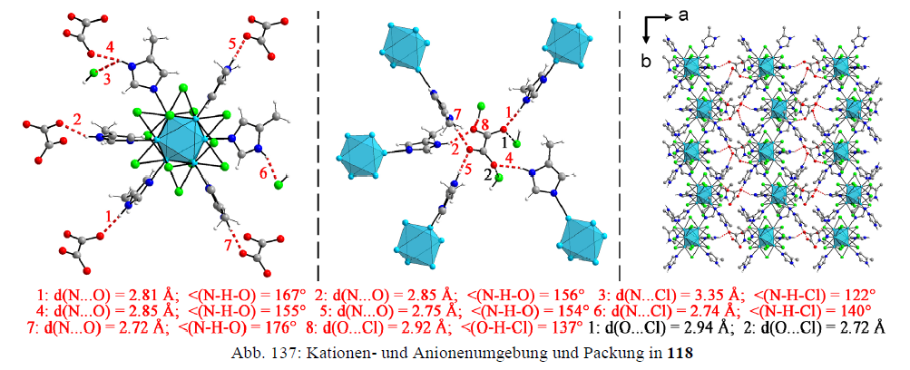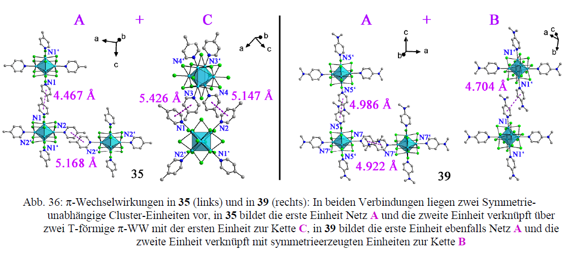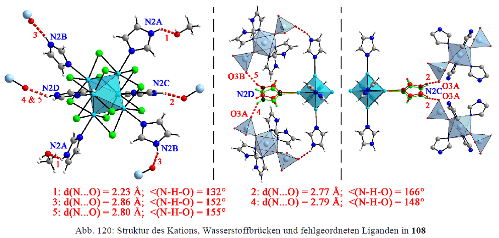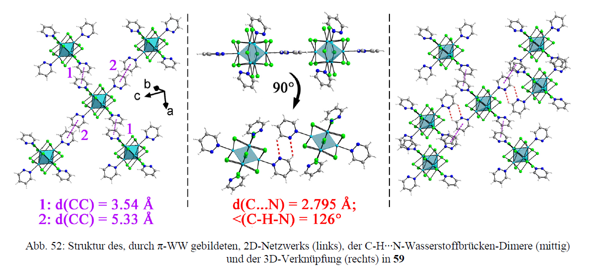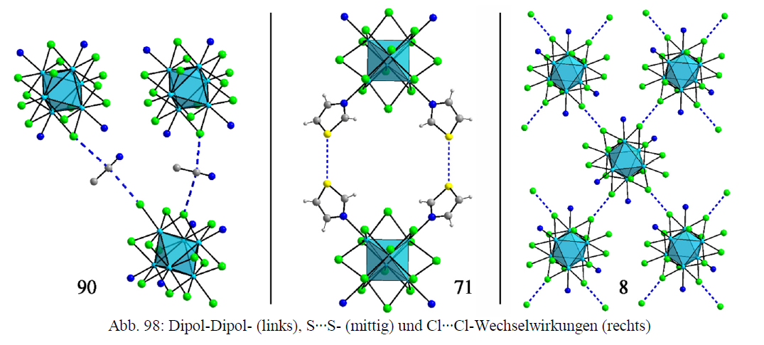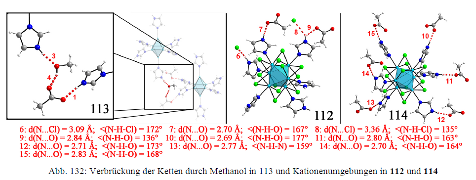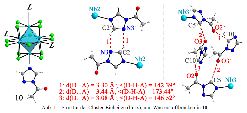 - Zweidimensionale Netzwerke: [Nb6Cl12(HIm)4(Im)2] ∙ 2 HIm ∙ 2 MeCN (93) und [Nb6Cl12(HIm)4(Im)2] ∙ 3 DMSO (94)