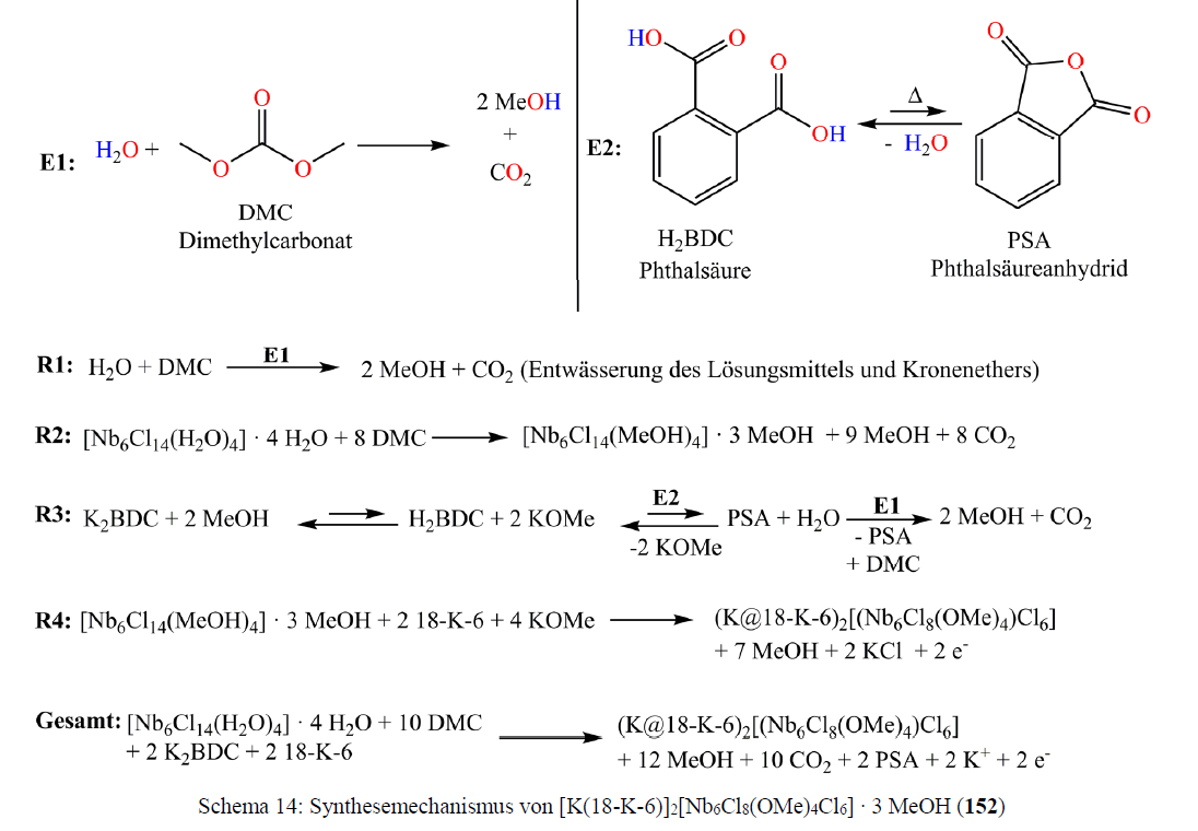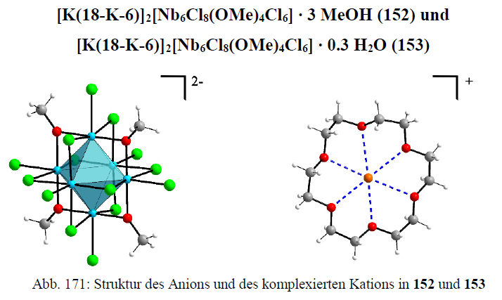 - Folgeprodukte aus [Nb6Cl12(MeOH)4(OMe)2] ∙ DABCO (95) (Verbindungen 150-151)