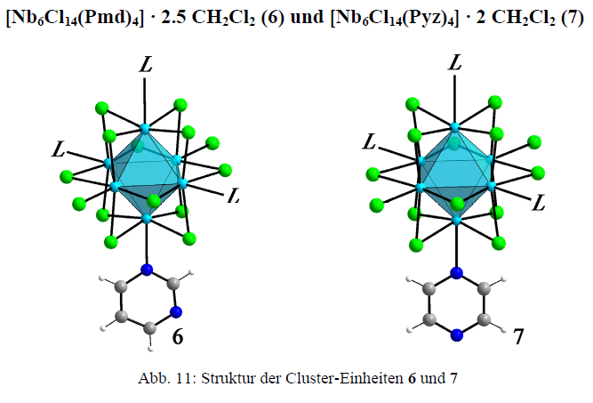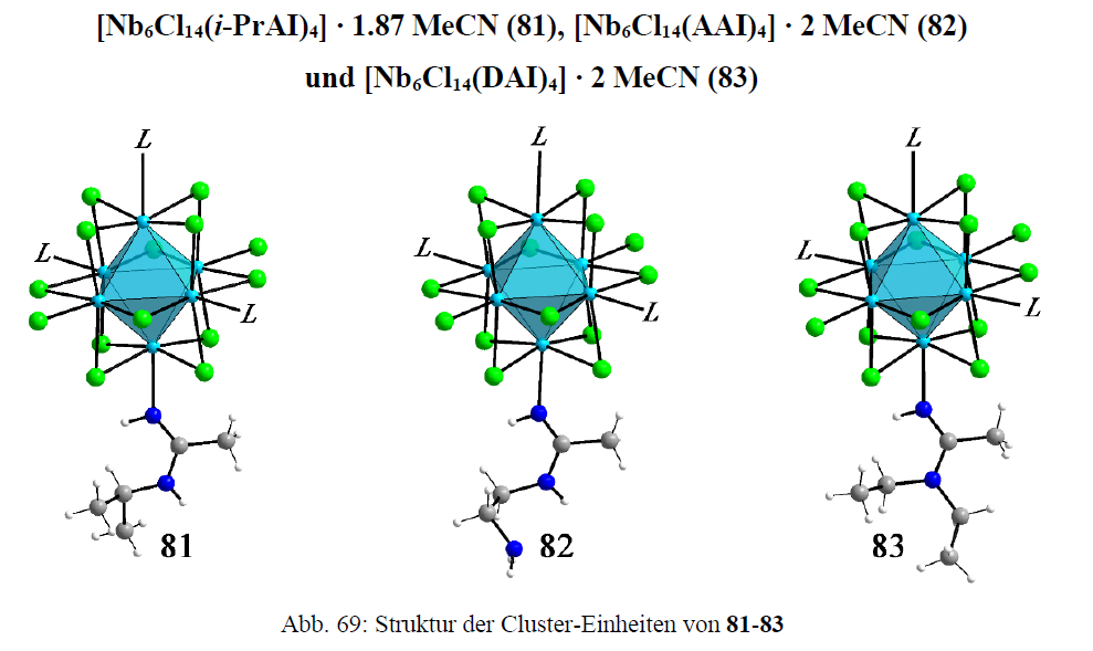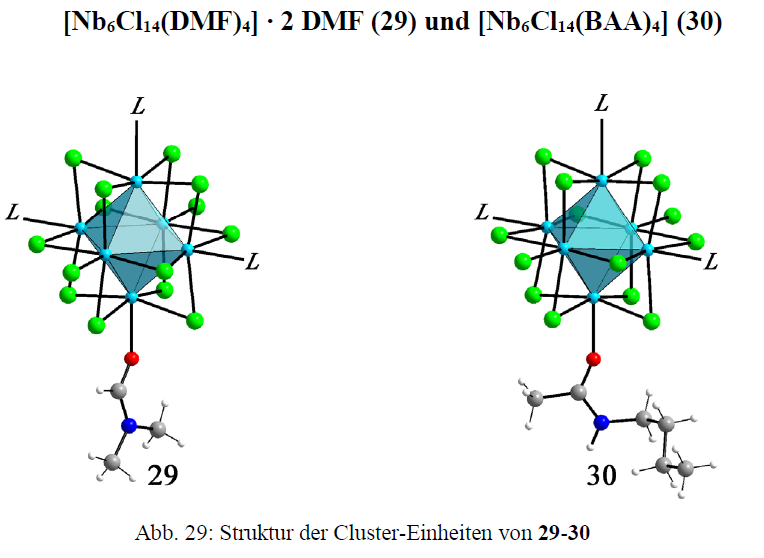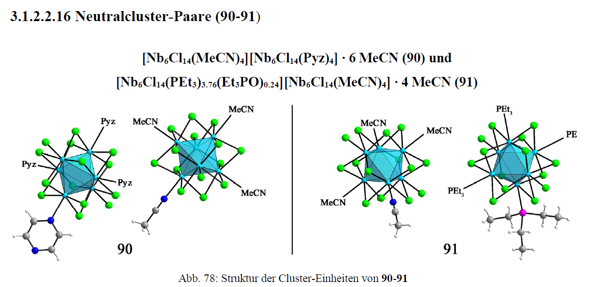 - Niobcluster-Komplex mit Selenoamid-Liganden: [Nb6Cl14(DMSeH)4] ∙ LM (89)