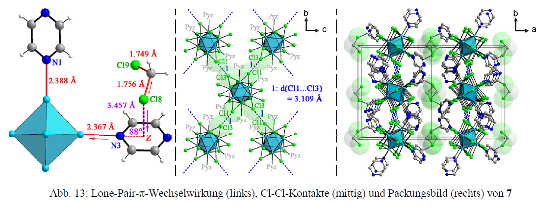 2. Folgeprodukte aus Reaktionen mit [Nb6Cl14(Pyz)4] ∙ 2 CH2Cl2 (7) bzw. [Nb6Cl14(Pyr-4-CN)4] ∙ 3.6 Pyr-4-CN (8) als Präkursor