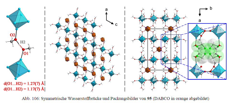 - Dreidimensionales Netzwerk: [Nb6Cl12(MeOH)4(OMe)2] ∙ DABCO ∙ LM (95)