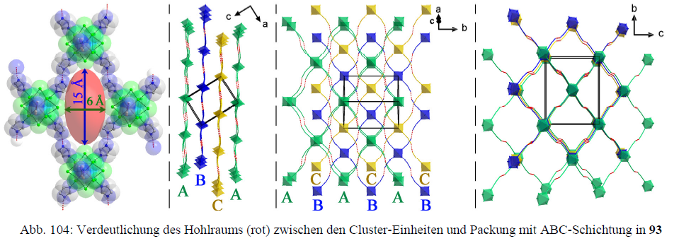 - Cluster-Kationen mit Polyoxometallat-Anionen (POMs) (108-111)