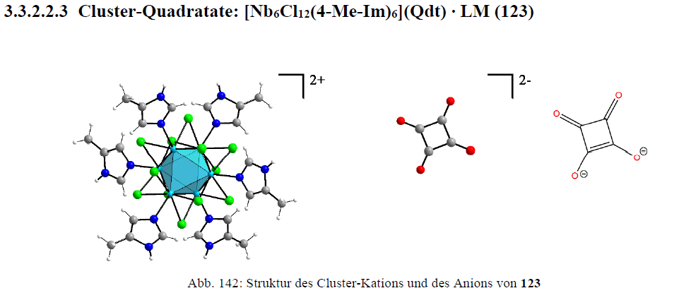 - Cluster-Quadratate: [Nb6Cl12(4-Me-Im)6](Qdt) ∙ LM (123)