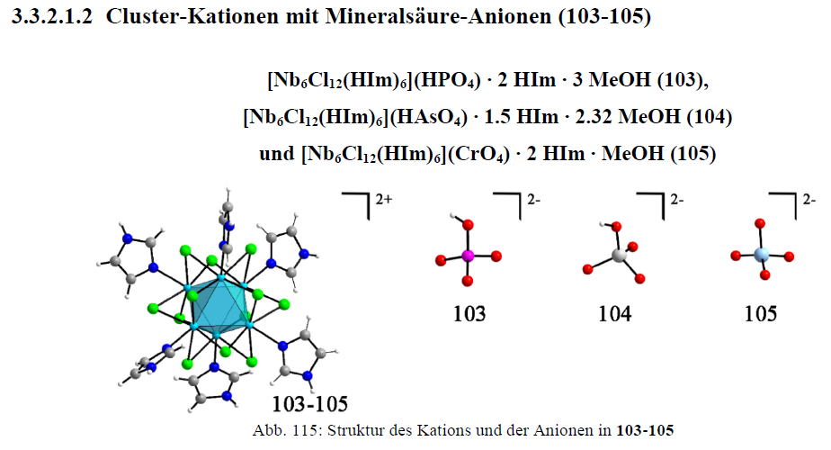- Cluster-Kationen mit Mineralsäure-Anionen (103-105)