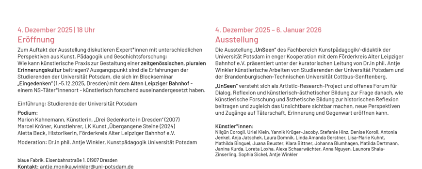 Wir freuen uns sehr, die Ausstellung „UnSeen“ anzukündigen – ein