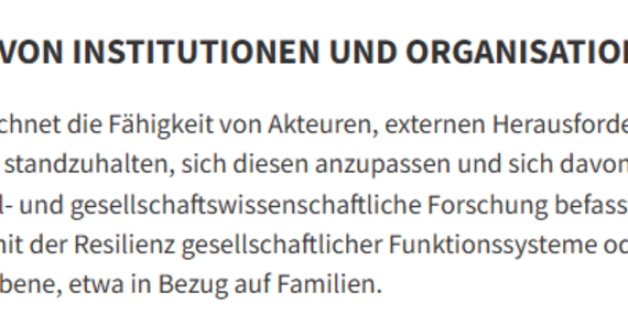 Vortrag im Potentialbereich „Resilienz von Institutionen und Organisationen“ (RIO)