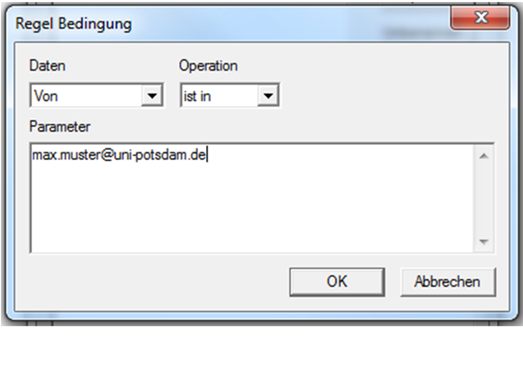 Des Weiteren ist es möglich, per Outlook zu konfigurieren, dass E-Mails je nach Absender, Betreff oder Ähnlichem in einem bestimmten Unterordner auf dem Mail-Server verschoben werden.