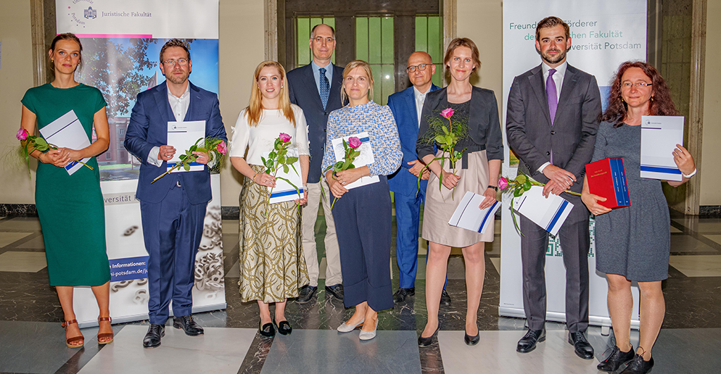 Als beste Studierende werden Denico Joel Ford und Nikolaus Konstantin Taube, die beide die exakt gleiche Examensnote erzielt haben, sowie Nuray Jordan geehrt. Sie sind die Jahrgangsbesten der beiden Prüfungskampagnen im akademischen Jahr 2022/23 und haben die Erste Juristische Prüfung mit hervorragenden Ergebnissen bestanden. Aus dem Deutsch-Französischen Studiengang der Juristischen Fakultäten der Université Paris Nanterre und der Universität Potsdam wird Camille Morel als beste französische Absolventin ausgezeichnet. Sie hat im Licence-/Bachelorstudiengang „Deutsch-Französische Studien“ ebenfalls eine außergewöhnlich gute Note erreicht.