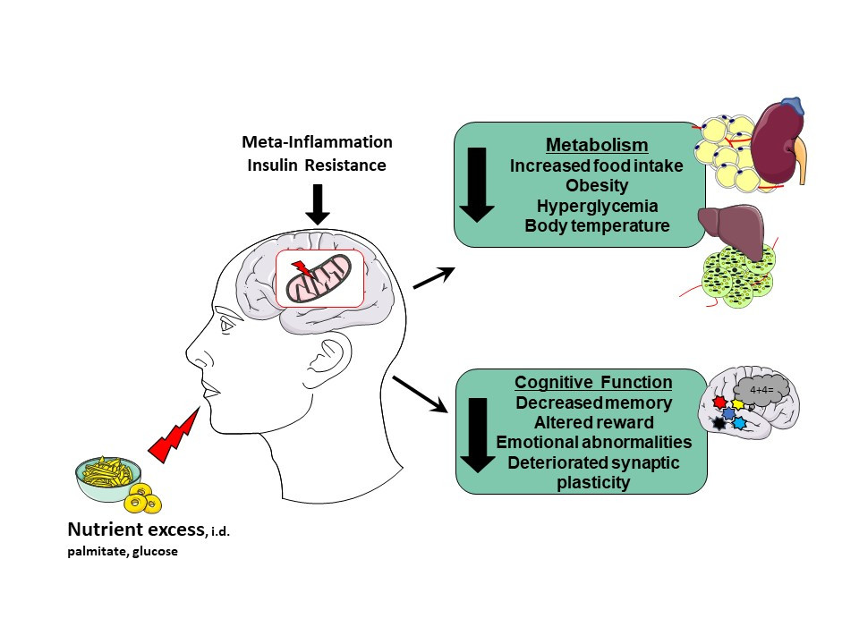 Am Lehrstuhl für Molekulare und Experimentelle Ernährungsmedizin des Instituts für Ernährungswissenschaft untersuchen wir den Einfluss der Ernährung auf den Stoffwechsel und die Gehirnfunktion. Unser wissenschaftliches Interesse liegt hier auf der Regulation der Insulinsensitivität. Insulin ist ein von der Bauchspeicheldrüse produziertes Hormon, welches den Blutzucker reguliert, aber auch die Nahrungsaufnahme beeinflusst und die Gehirnfunktion unterstützt. Eine verringerte Insulinresistenz im Gehirn, einem Zustand, indem der Körper nicht mehr ausreichend auf physiologische Insulinkonzentrationen reagieren kann, kann eine erhöhte Nahrungsaufnahme verursachen und somit die Entstehung von Adipositas und Diabetes begünstigen. Andererseits ist eine Falsch- und Überernährung auch ein entscheidender Faktor für die Entstehung von Adipositas und Insulinresistenz, welche Merkmale des metabolischen Syndroms darstellen. Die steigende Prävalenz von Adipositas, das Auftreten Adipositas-assoziierter Erkrankungen, wie die Stoffwechselkrankheit Typ 2 Diabetes mellitus (Altersdiabetes) betrifft heutzutage alle Bevölkerungsschichten, verringert die Lebensqualität und stellt eine große Belastung für unser Gesundheitssystem dar. Epidemiologische Daten weisen zudem darauf hin, dass Diabetes mit neurodegenerativen und neurologischen Folgeerkrankungen assoziiert ist. So weisen Patienten mit chronischem Übergewicht, Diabetes als auch neurodegenerativen Erkrankungen wie Morbus Alzheimer klare, molekulare Anzeichen einer Insulinresistenz im Gehirn (zentrale oder zerebrale Insulinresistenz) auf.