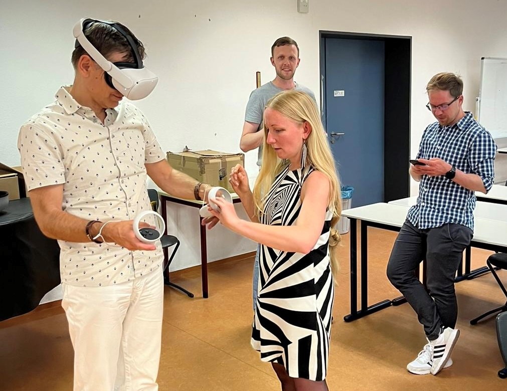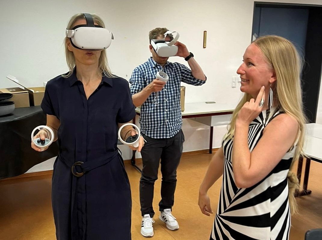 Im Praxisteil der Veranstaltung bekamen die Teilnehmenden die Möglichkeit, den virtuellen Konzertsaal der Kammerakademie Potsdam zu besuchen, sich mit einem VR-Headset als Avatar durch den Raum zu bewegen und hier mit anderen Besucher:innen Kontakt aufzunehmen.