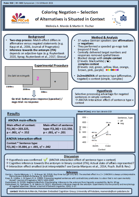 - Platonova, O. & Miklashevsky, A. Embodied Cognition, Fast and Slow: The Crucial Role of Timing for Sensorimotor Semantic Activation. ESCoP Porto.