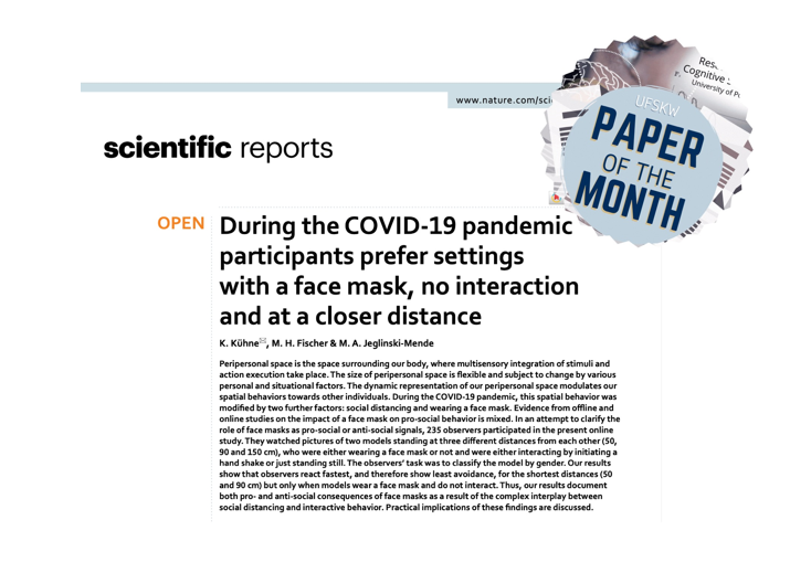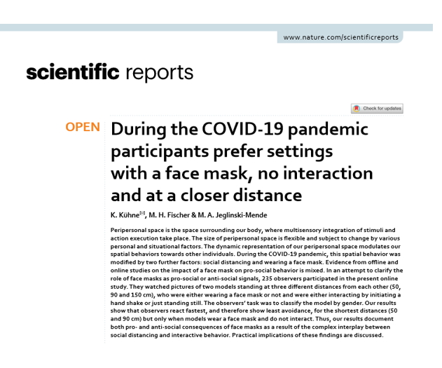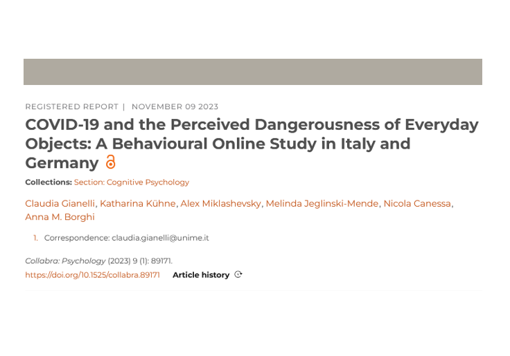 Der registered report „COVID-19 and the Perceived Dangerousness of Everyday Objects: A Behavioral Online Study in Italy and Germany“ von Claudia Gianelli, Katharina Kühne, Alex Miklashevsky, Melinda A. Jeglinski-Mende, Nicola Canessa und Anna M. Borghi wurde in Collabra Psychology veröffentlicht