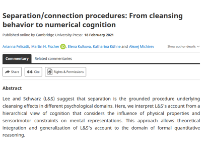 Im März 2020 haben Arianna Felisatti, Jochen Laubrock, Samuel Shaki und Martin Fischer einen Kommentar mit dem Titel "Commentary: A mental number line in human newborns" (doi.org/10.3389/fnhum.2020.00099), in Frontiers Human Neuroscience veröffentlicht.