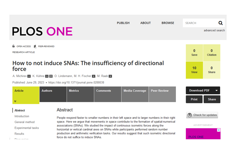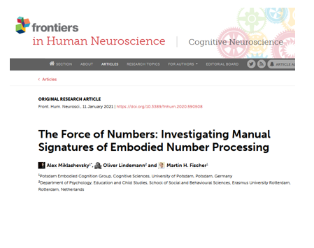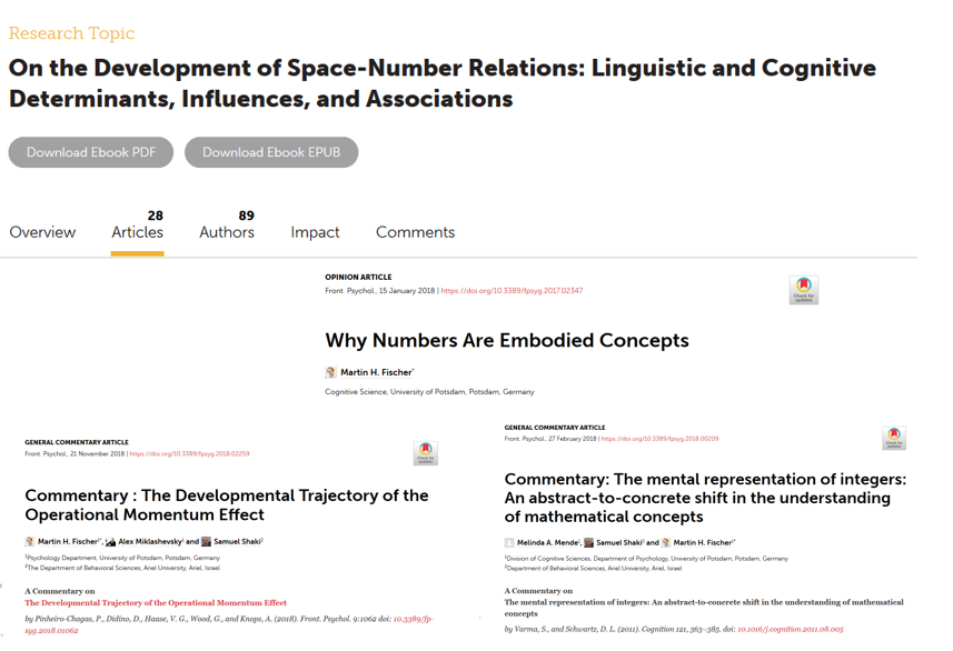 Im März 2020 ist das Research Topic mit dem Titel "On the Development of Space-Number Relations: Linguistic and Cognitive Determinants, Influences, and Associations" als E-Book erschienen. Die PECoG-Gruppe hat drei Veröffentlichungen in diesem Research Topic. Diese sind: