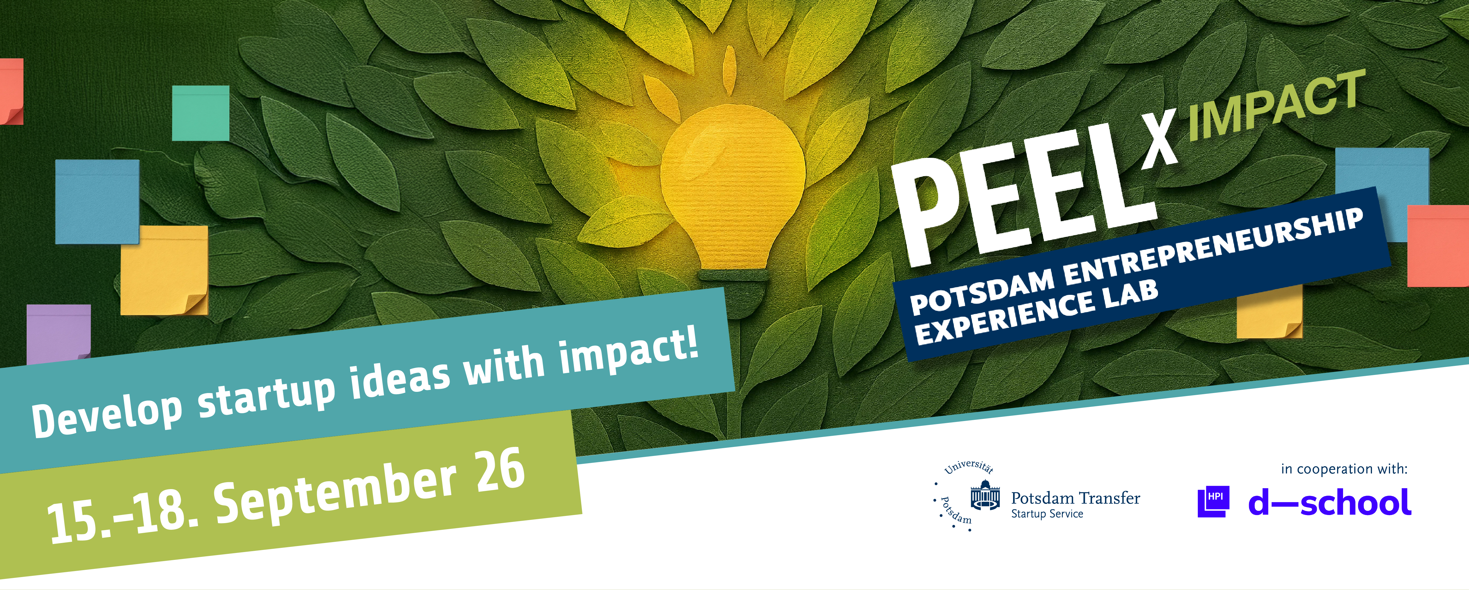 Dann bist du bei PEELxImpact genau richtig! In vier vollen Workshoptagen entwickelst du gemeinsam in interdisziplinären Teams innovative Lösungen für gesellschaftliche Herausforderungen – und machst den Schritt vom Forschungsergebnis zum Geschäftsmodell! Unser Ziel ist es, durch Unternehmertum einen nachhaltigen Impact, auf uns Menschen, unsere Gesellschaft und unsere Umwelt zu schaffen. Denn wir glauben, dass unternehmerisches Handeln ein großartiges Potenzial hat, nachhaltige Veränderungen und einen positiven Wandel zu bewirken!