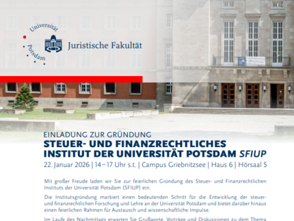 Mit großer Freude laden wir Sie zur feierlichen Gründung des Steuer- und Finanzrechtlichen Instituts der Universität Potsdam (SFIUP) ein.