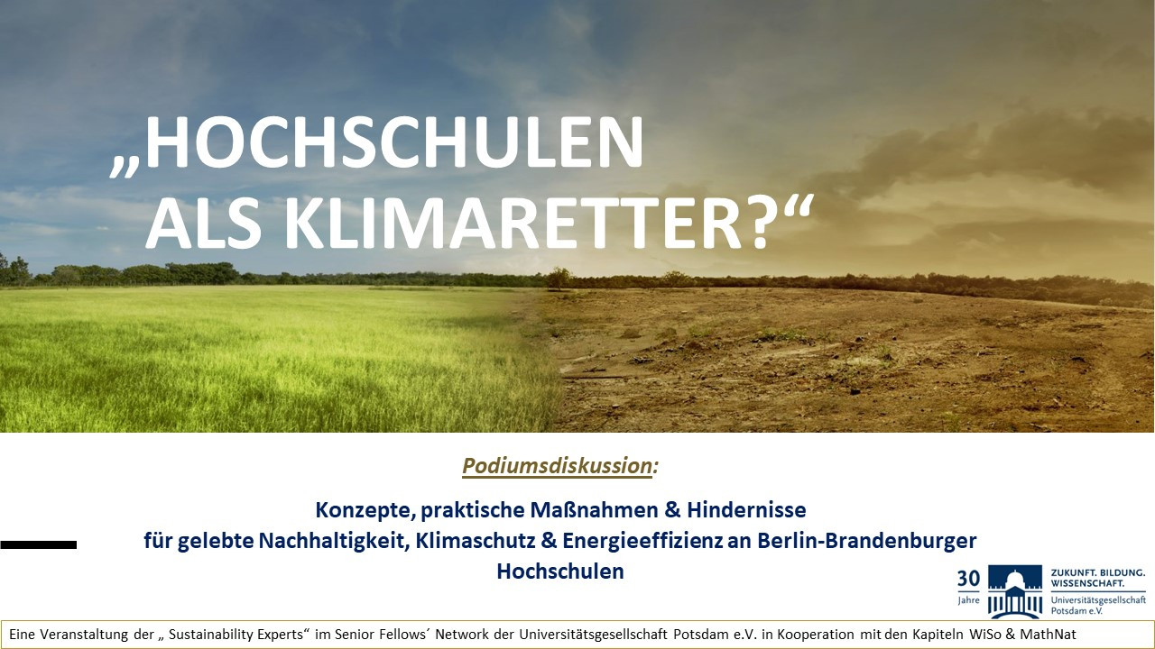 Am 7. Mai 2022 stellte der neu gegründete Arbeitskreis der Potsdamer "Sustainability Experts " (Forum Nachhaltigkeit) des Senior Fellows' Network der Universitätsgesellschaft Potsdam e.V. in Kooperation mit dem Leibniz-Instituts für Agrartechnik (ATB) und der Innovativen Hochschule sich und seine Themen der interessierten Öffentlichkeit vor.