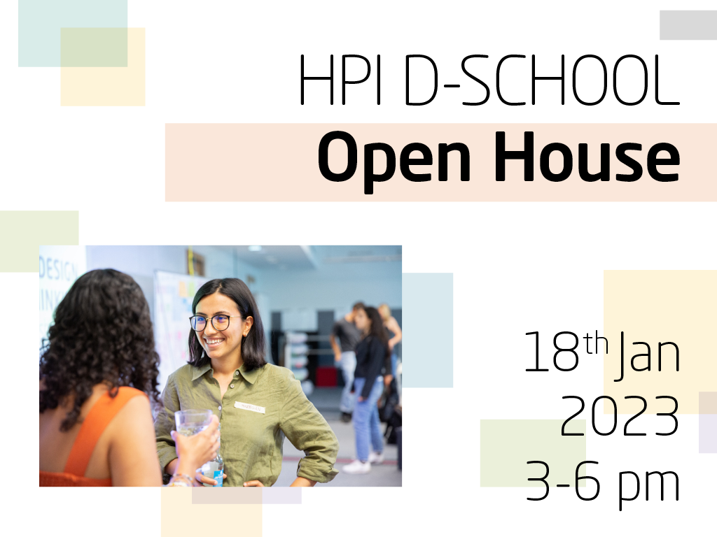 Am 18. Januar 2023 öffnen wir wieder für euch die Türen: Kommt vorbei auf dem HPI Campus in Potsdam und erhaltet einen ersten Einblick in Design Thinking und die HPI D-School.